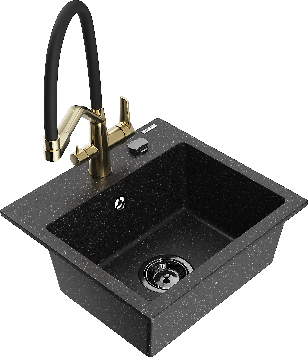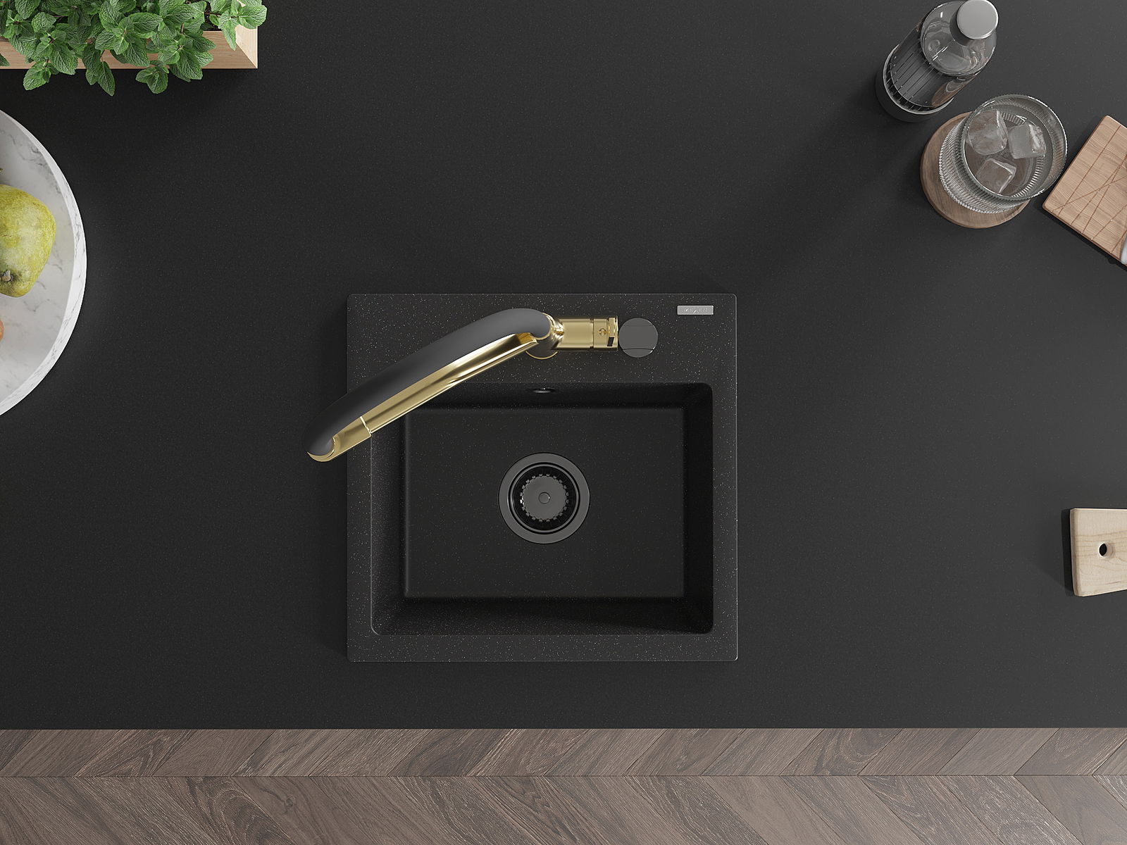 Mexen Milo zlewozmywak granitowy 1-komorowy z baterią kuchenną Duo, czarny/srebrny metalik - 6505-73-671701-57-B