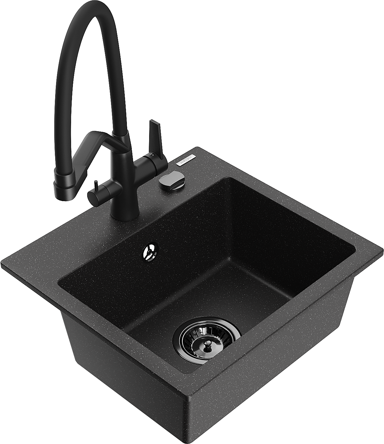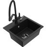 Mexen Milo zlewozmywak granitowy 1-komorowy z baterią kuchenną Duo, czarny/srebrny metalik - 6505-73-671701-70-B