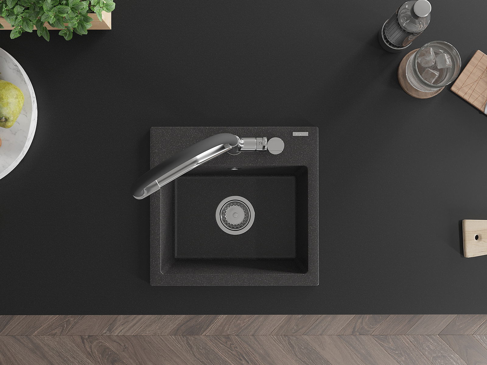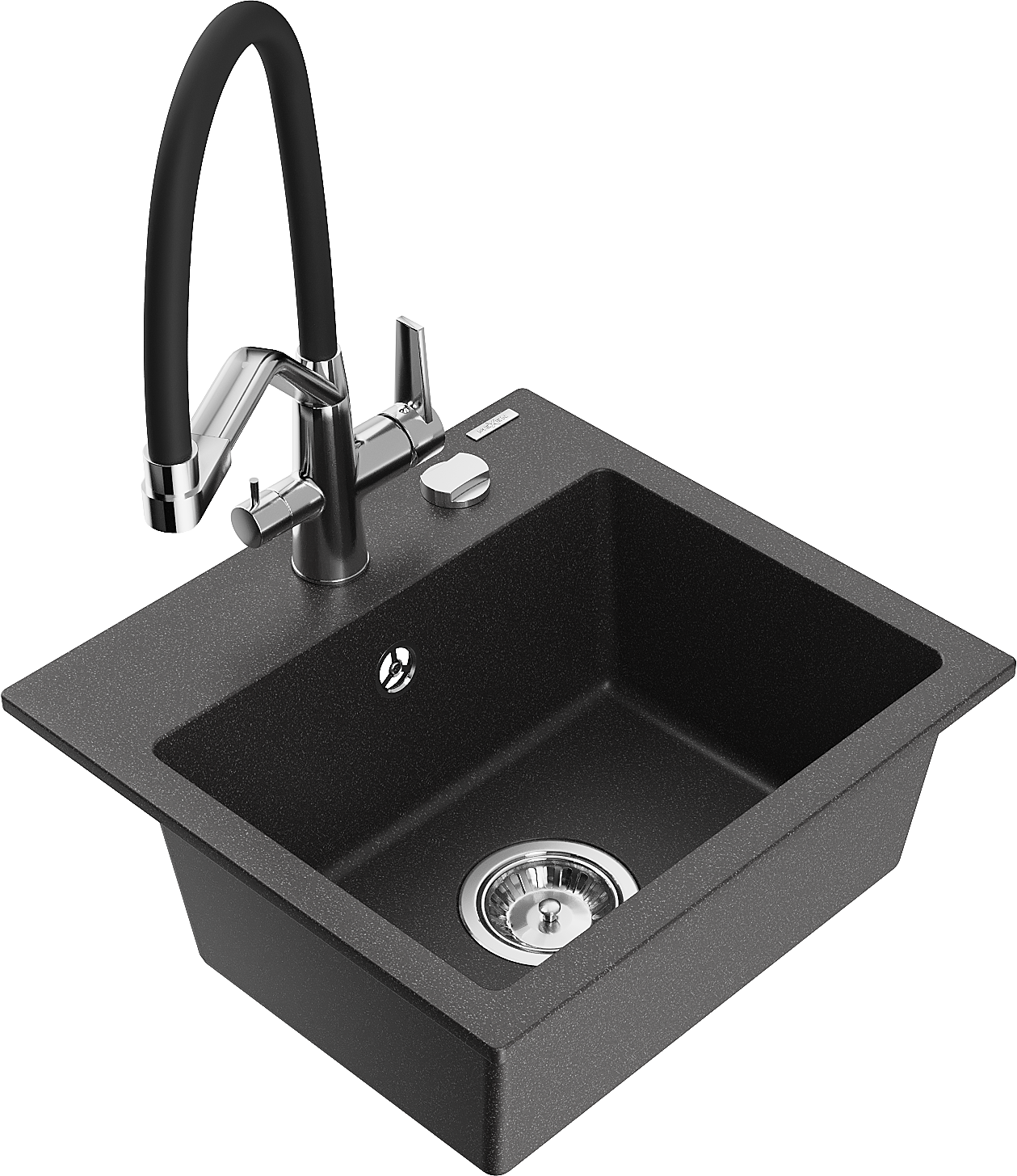 Mexen Milo zlewozmywak granitowy 1-komorowy z baterią kuchenną Duo, czarny nakrapiany - 6505-76-671701-07