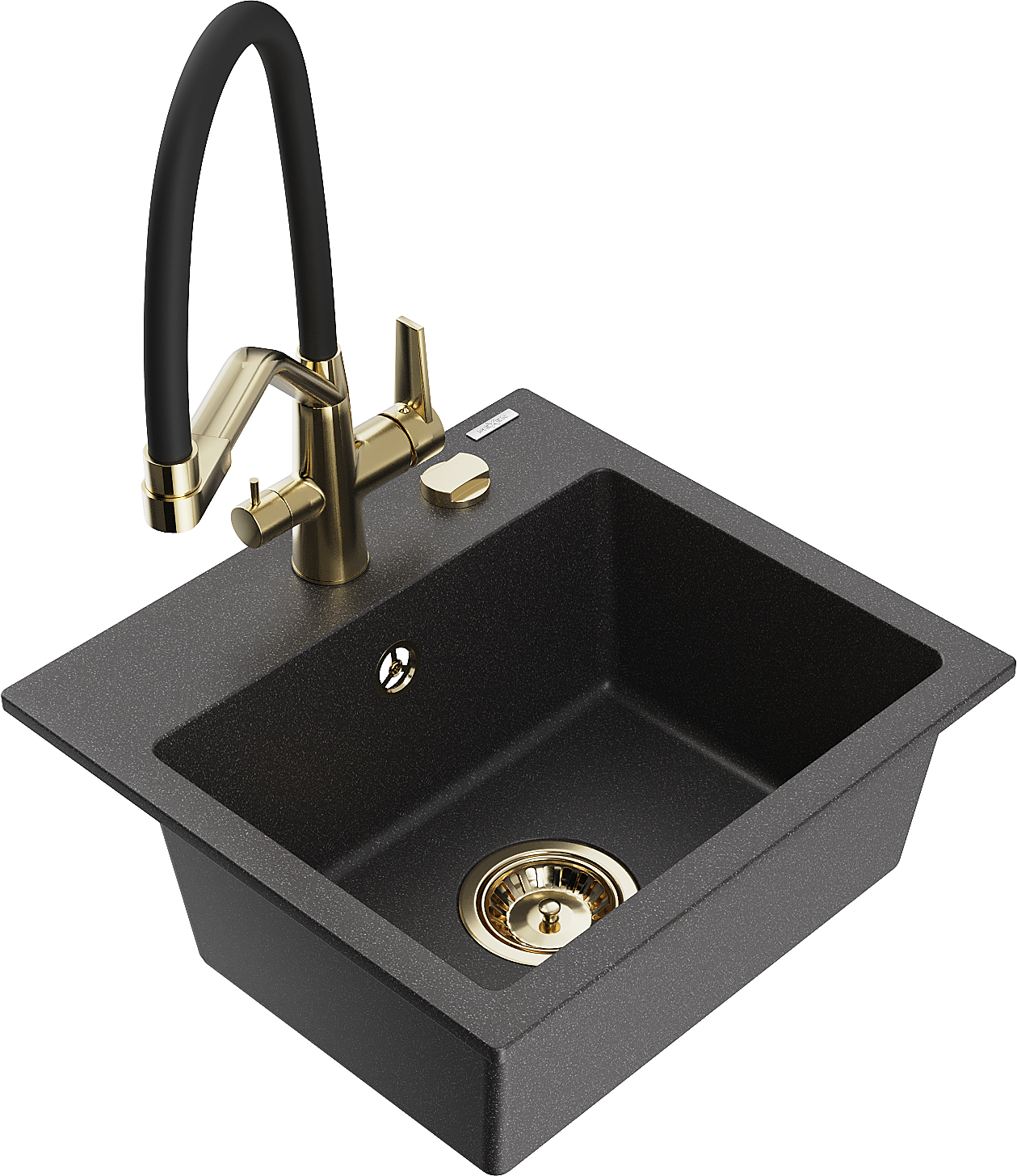 Mexen Milo zlewozmywak granitowy 1-komorowy z baterią kuchenną Duo, czarny nakrapiany - 6505-76-671701-57-G