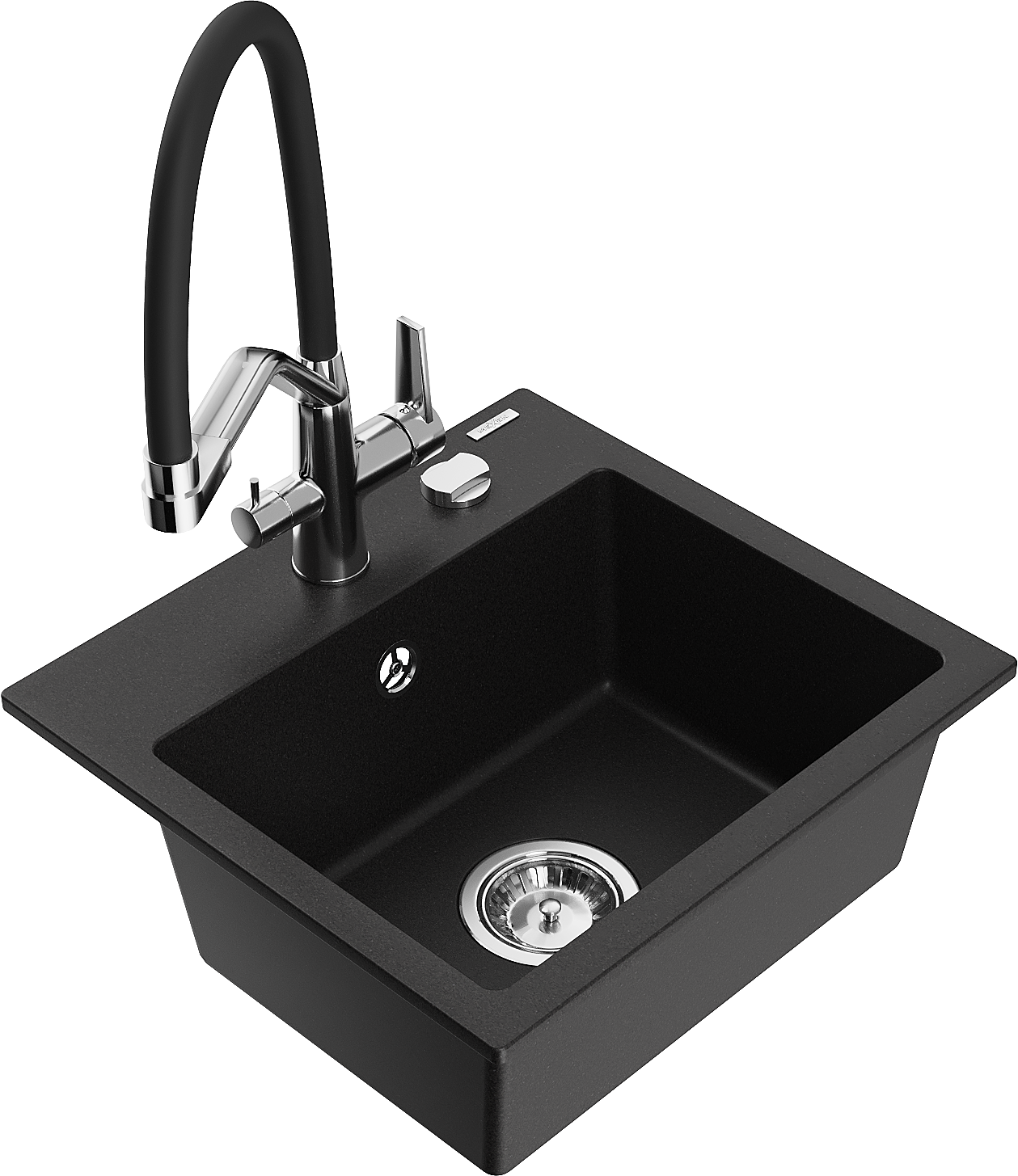 Mexen Milo zlewozmywak granitowy 1-komorowy z baterią kuchenną Duo, czarny - 6505-77-671701-07