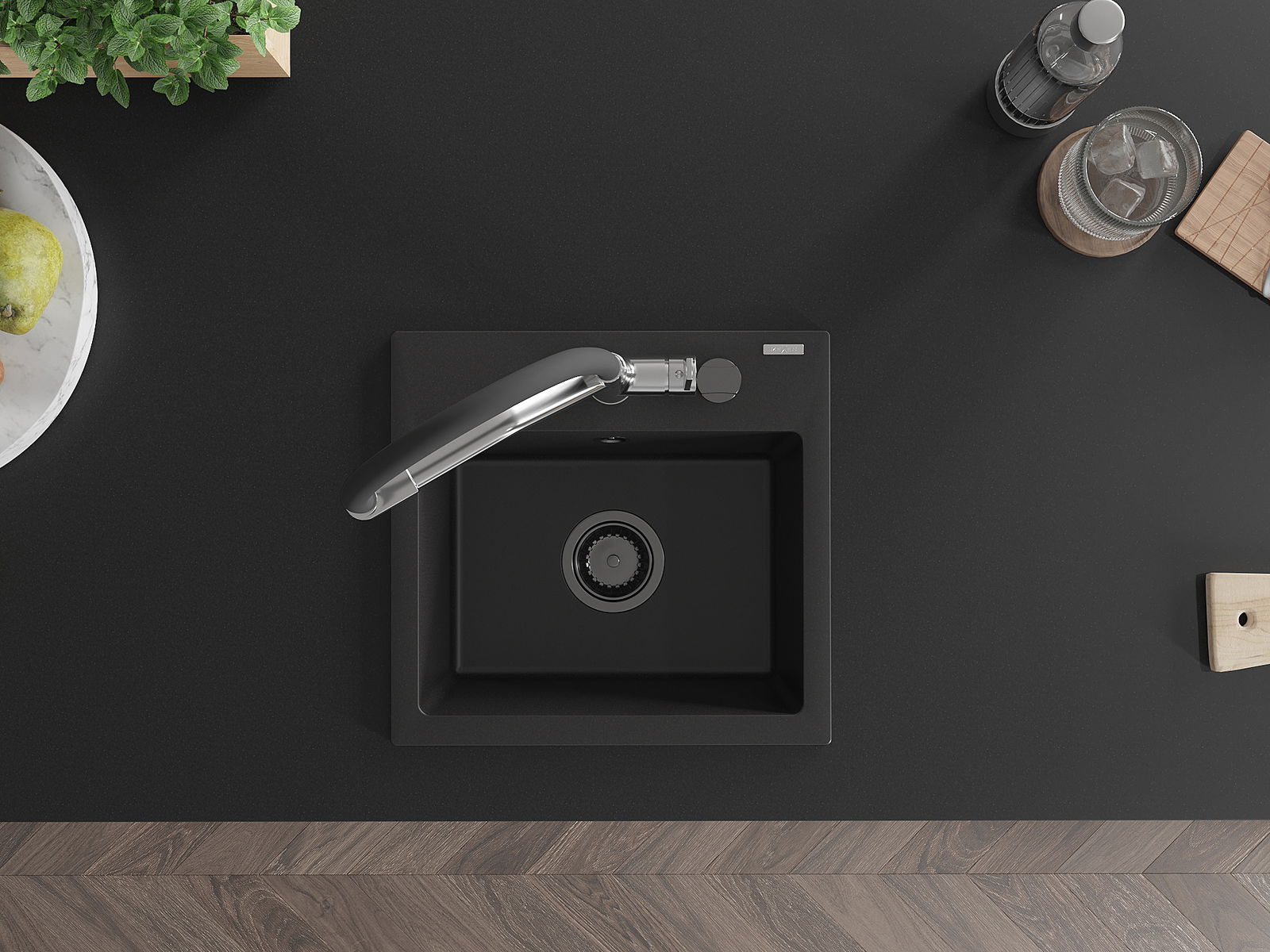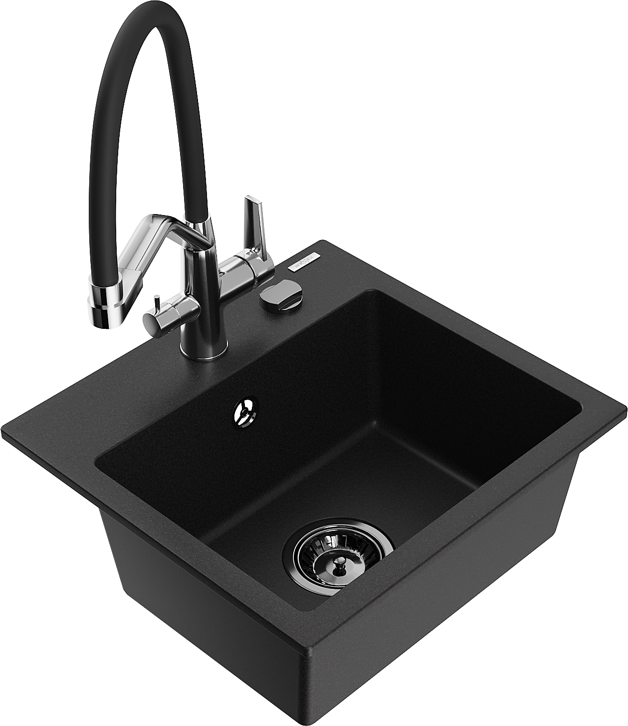 Mexen Milo zlewozmywak granitowy 1-komorowy z baterią kuchenną Duo, czarny - 6505-77-671701-07-B