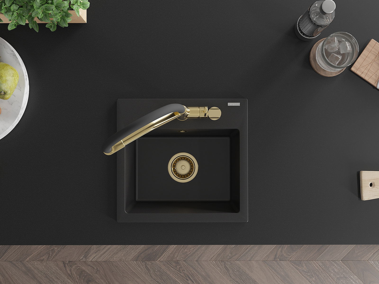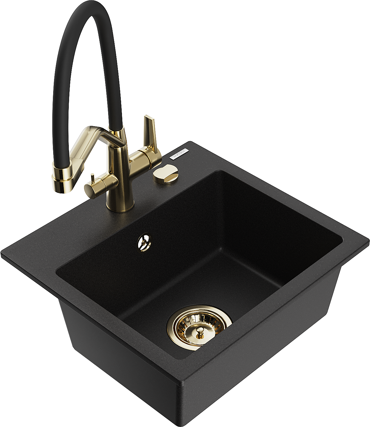 Mexen Milo zlewozmywak granitowy 1-komorowy z baterią kuchenną Duo, czarny - 6505-77-671701-57-G