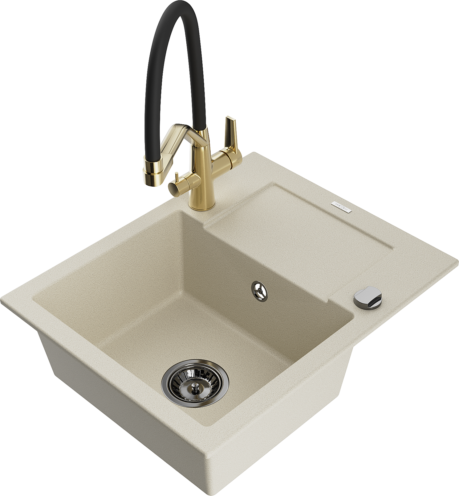 Mexen Enzo zlewozmywak granitowy 1-komorowy z ociekaczem i baterią kuchenną Duo, beżowy - 6506-69-671701-57-B