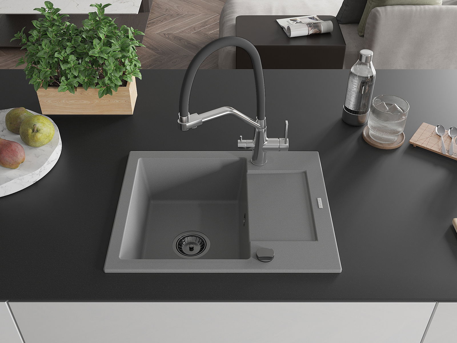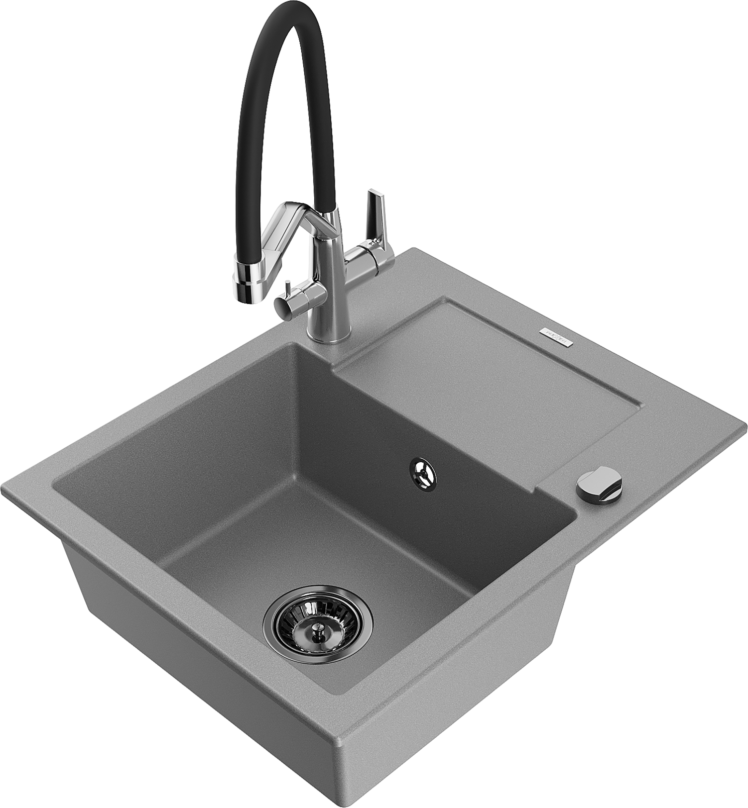 Mexen Enzo zlewozmywak granitowy 1-komorowy z ociekaczem i baterią kuchenną Duo, szary - 6506-71-671701-07-B
