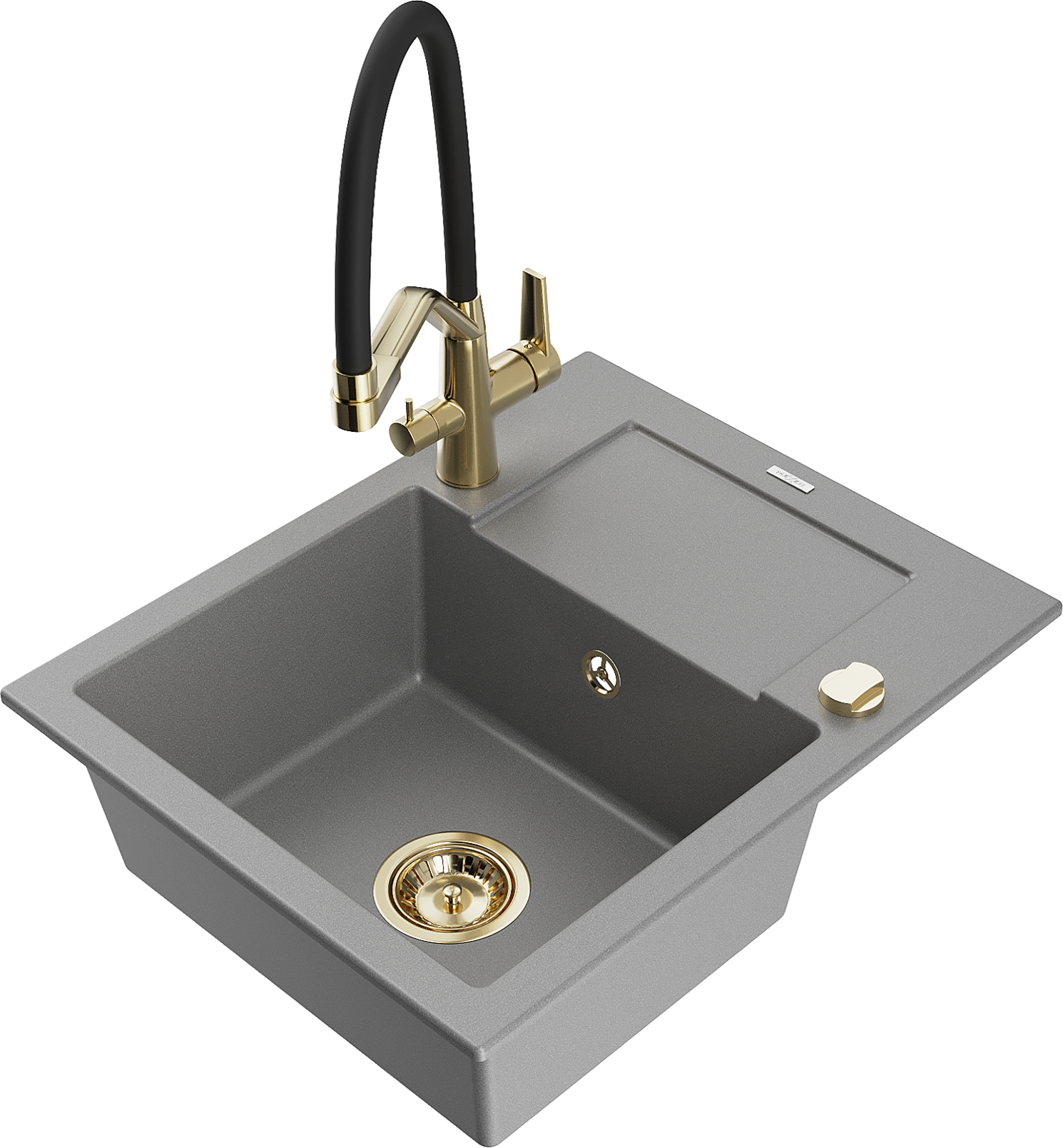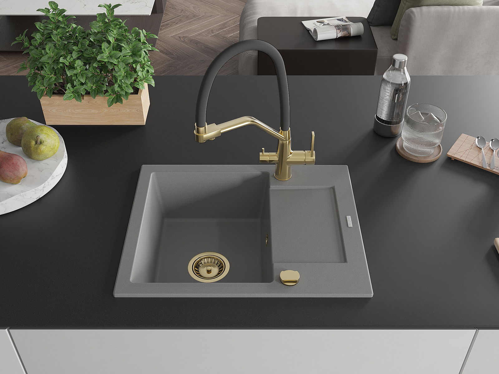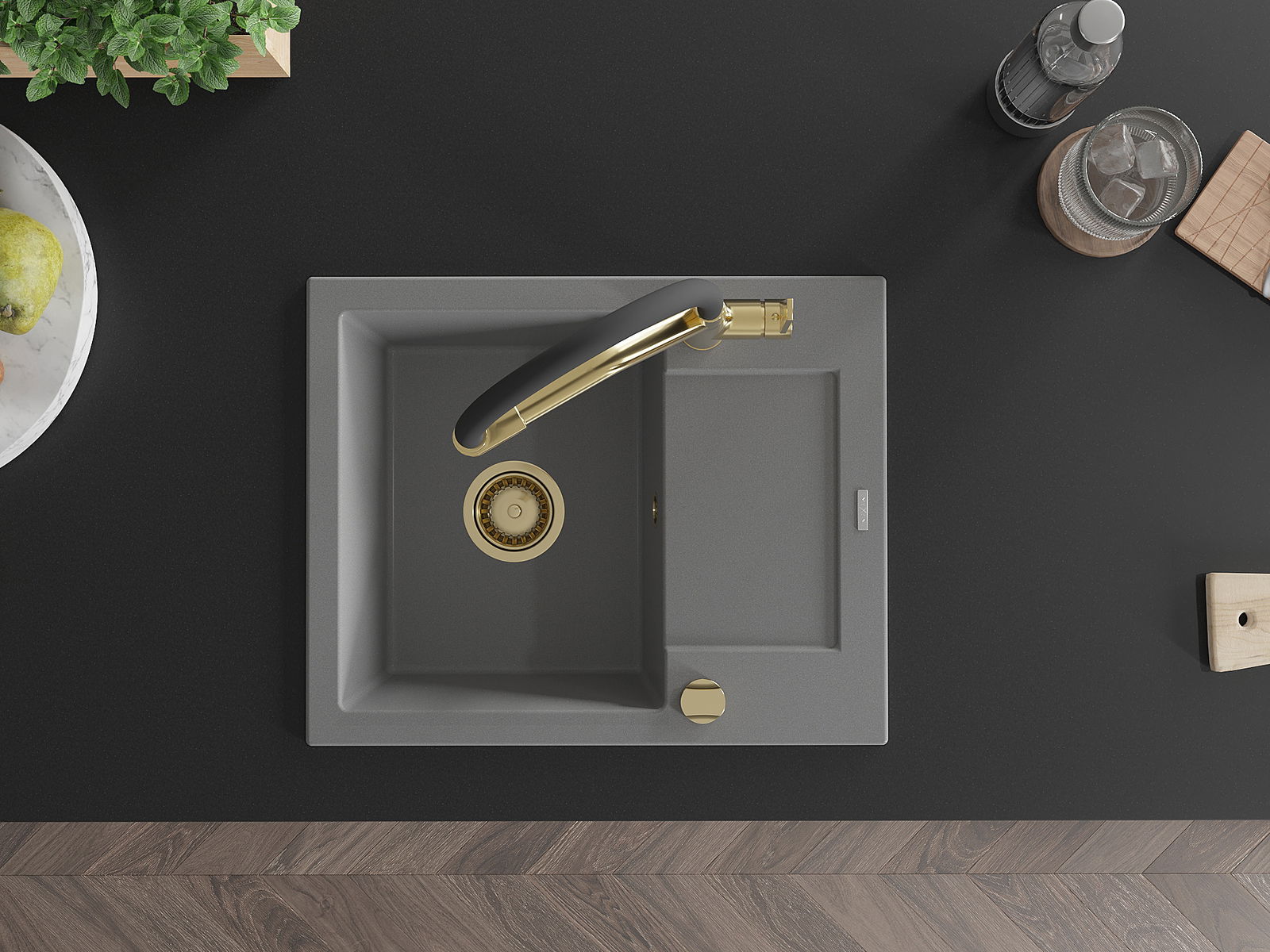 Mexen Enzo zlewozmywak granitowy 1-komorowy z ociekaczem i baterią kuchenną Duo, szary - 6506-71-671701-57-G