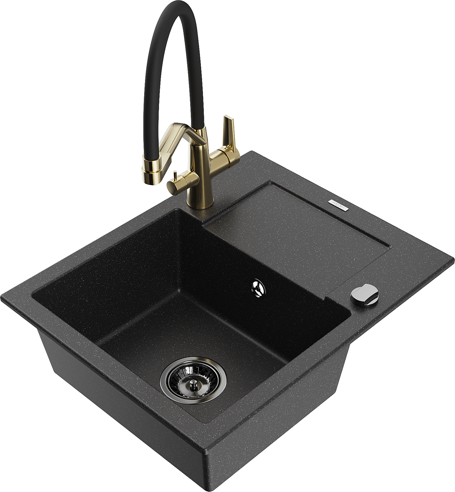 Mexen Enzo zlewozmywak granitowy 1-komorowy z ociekaczem i baterią kuchenną Duo, czarny/srebrny metalik - 6506-73-671701-57-B