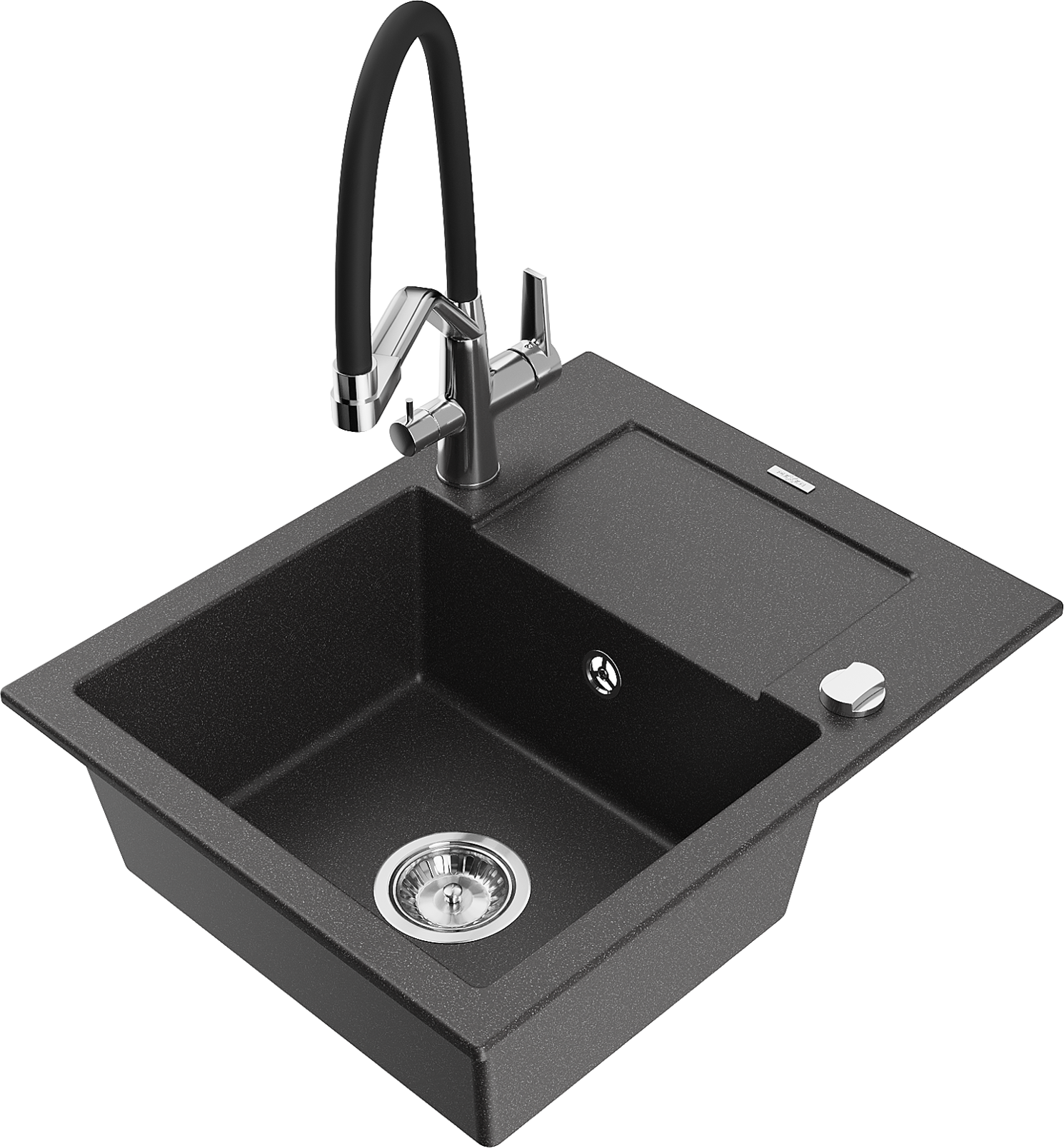 Mexen Enzo zlewozmywak granitowy 1-komorowy z ociekaczem i baterią kuchenną Duo, czarny nakrapiany - 6506-76-671701-07