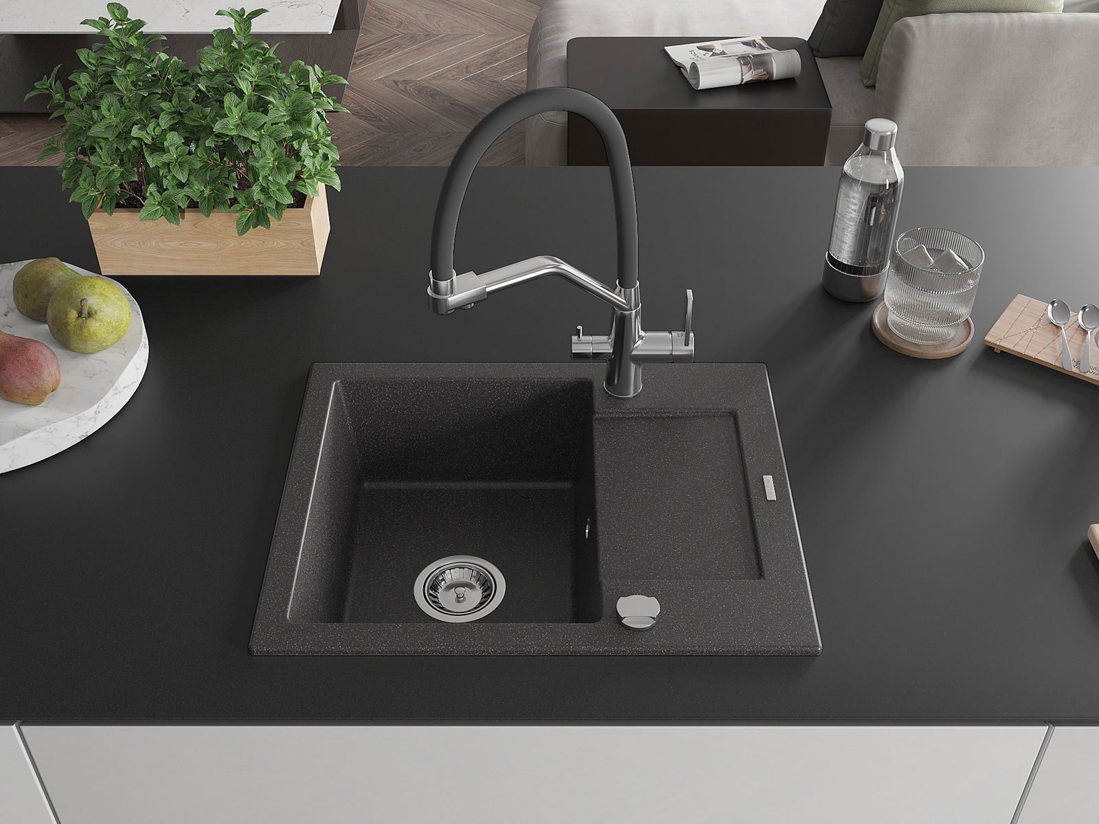 Zlewozmywak został wykonany z wysokiej jakości granitu. Stanowi eleganckie, a przede wszystkim praktyczne uzupełnienie każdej kuchni, niezależnie od jej stylu. Wysoka jakość oraz trwałość granitu zapewniają wieloletnie użytkowanie.
