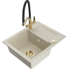 Zlewozmywak został wykonany z wysokiej jakości granitu. Stanowi eleganckie, a przede wszystkim praktyczne uzupełnienie każdej kuchni, niezależnie od jej stylu. Wysoka jakość oraz trwałość granitu zapewniają wieloletnie użytkowanie.