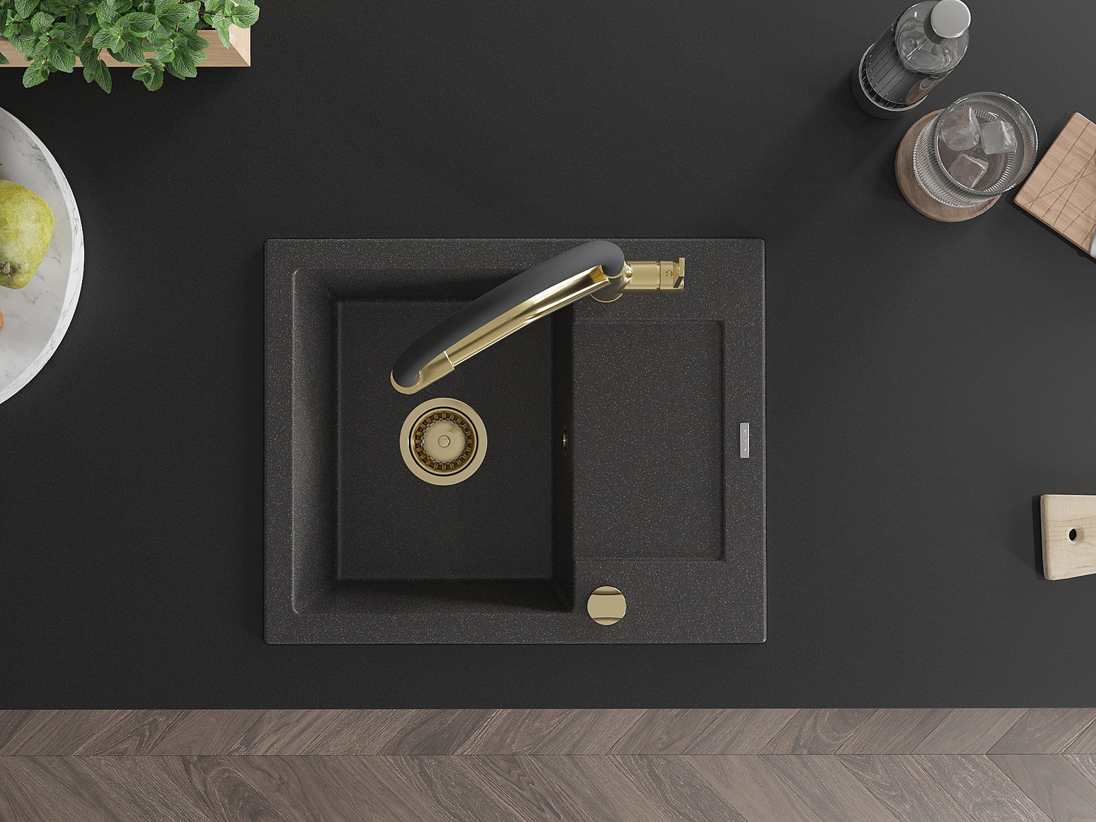 Mexen Enzo zlewozmywak granitowy 1-komorowy z ociekaczem i baterią kuchenną Duo, czarny nakrapiany - 6506-76-671701-57-G