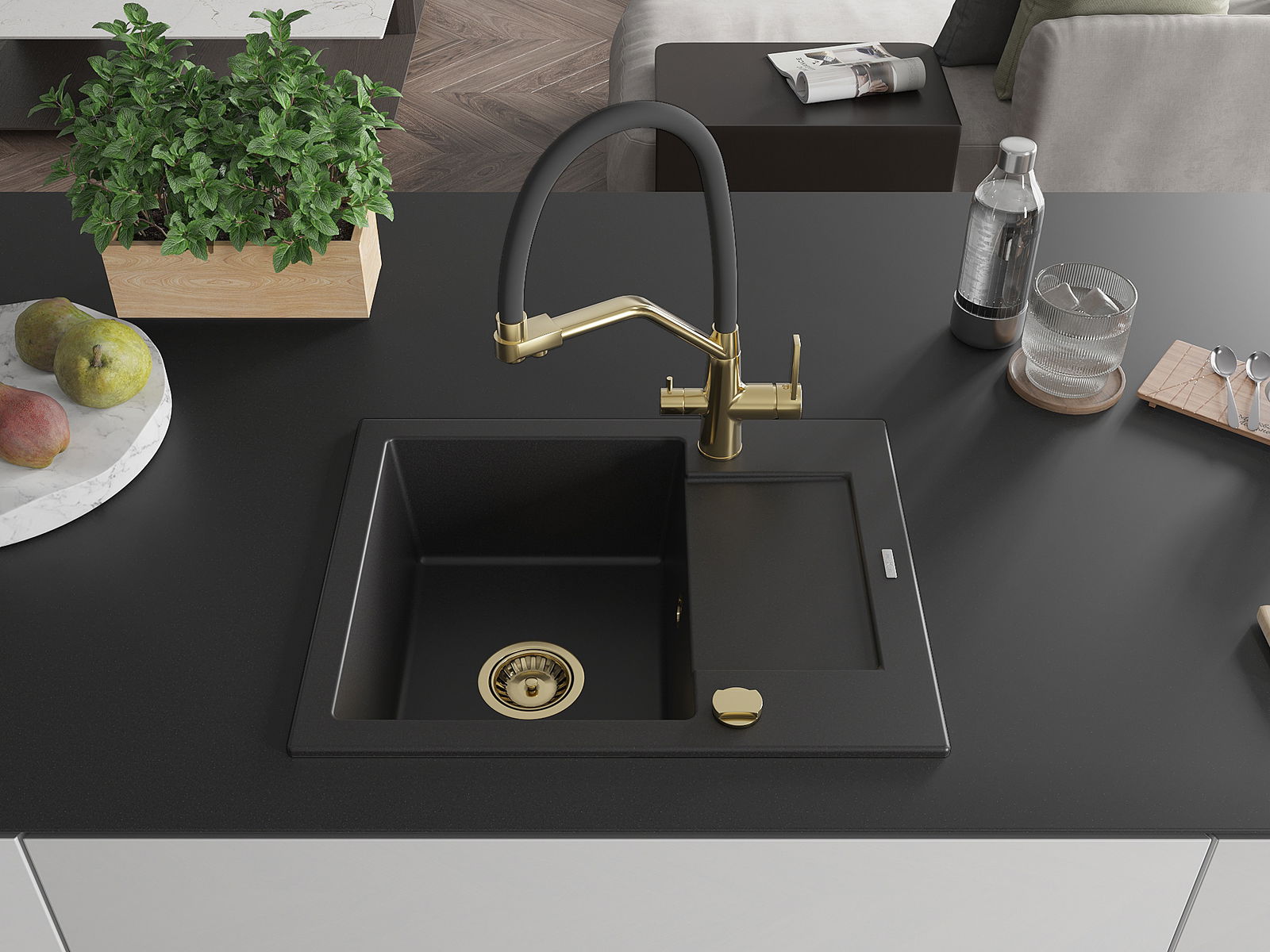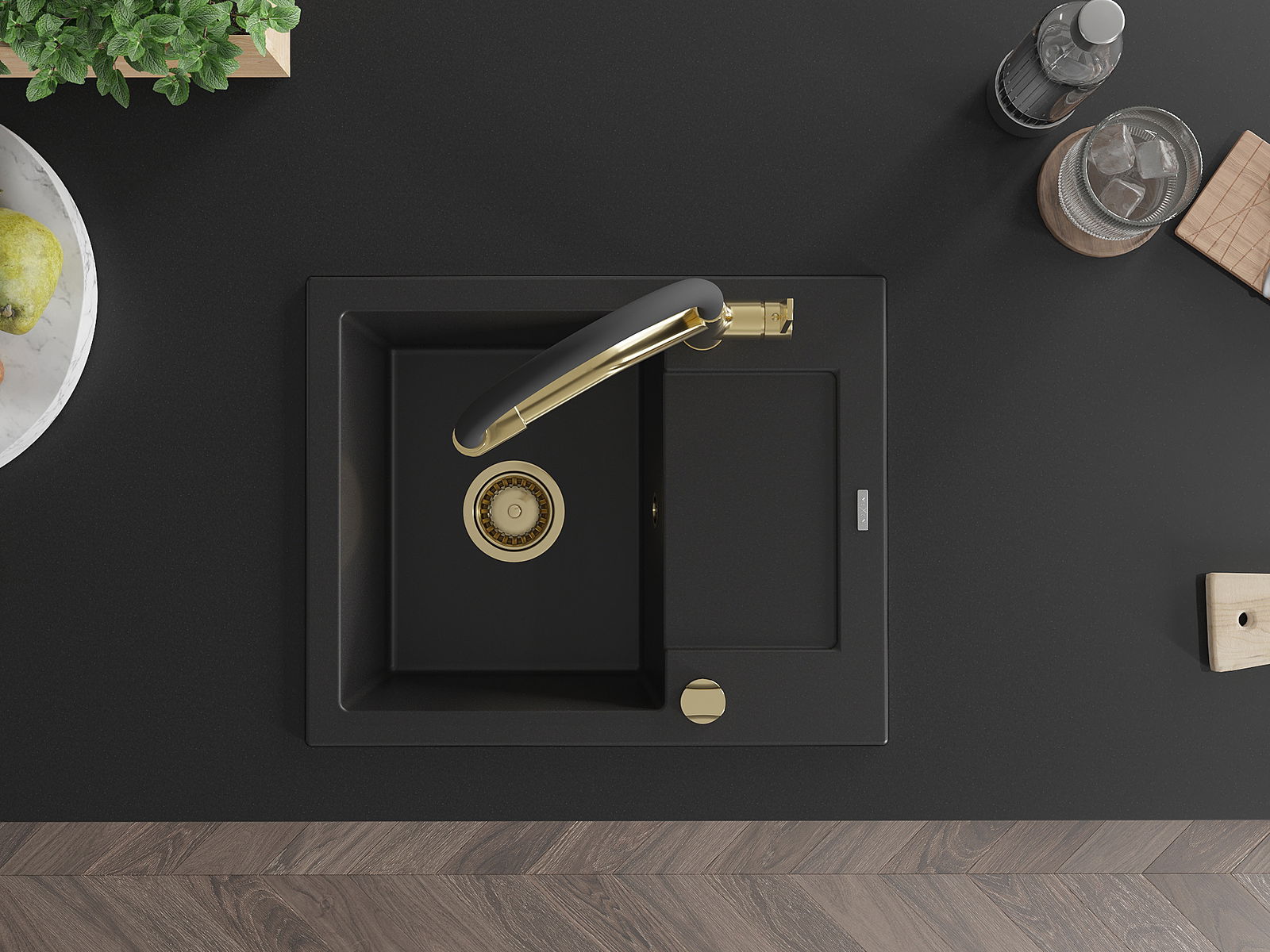 Mexen Enzo zlewozmywak granitowy 1-komorowy z ociekaczem i baterią kuchenną Duo, czarny - 6506-77-671701-57-G