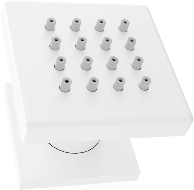 System charakteryzuje się wykorzystaniem silikonowych gumek, ogranicza osadzanie się kamienia oraz ułatwia czyszczenie – wystarczy przetrzeć palcem lub ściereczką. W ten sposób można zapobiec zatkaniu się dysz i wydłużyć trwałość produktu.