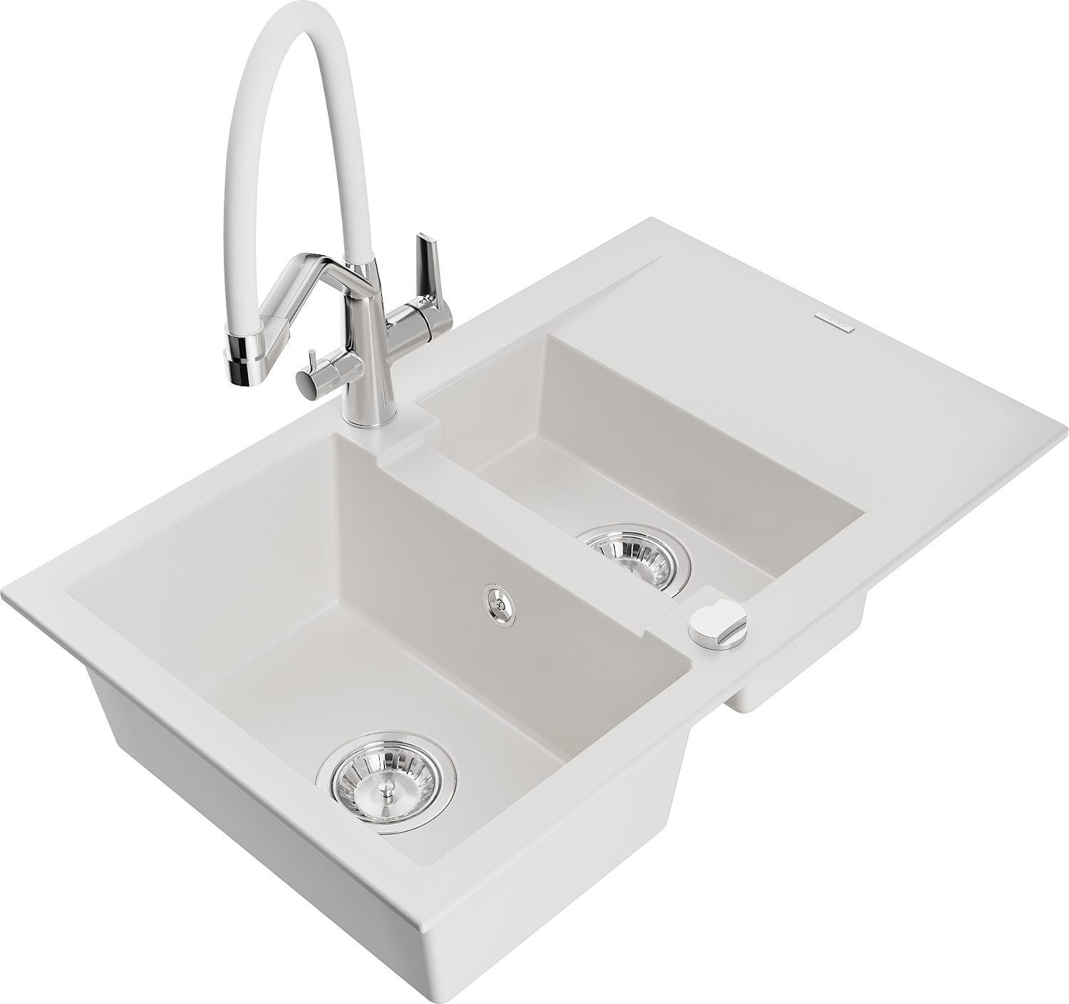 Mexen Gaspar zlewozmywak granitowy 1,5-komorowy z ociekaczem i baterią kuchenną Duo, biały - 6507-20-671701-02