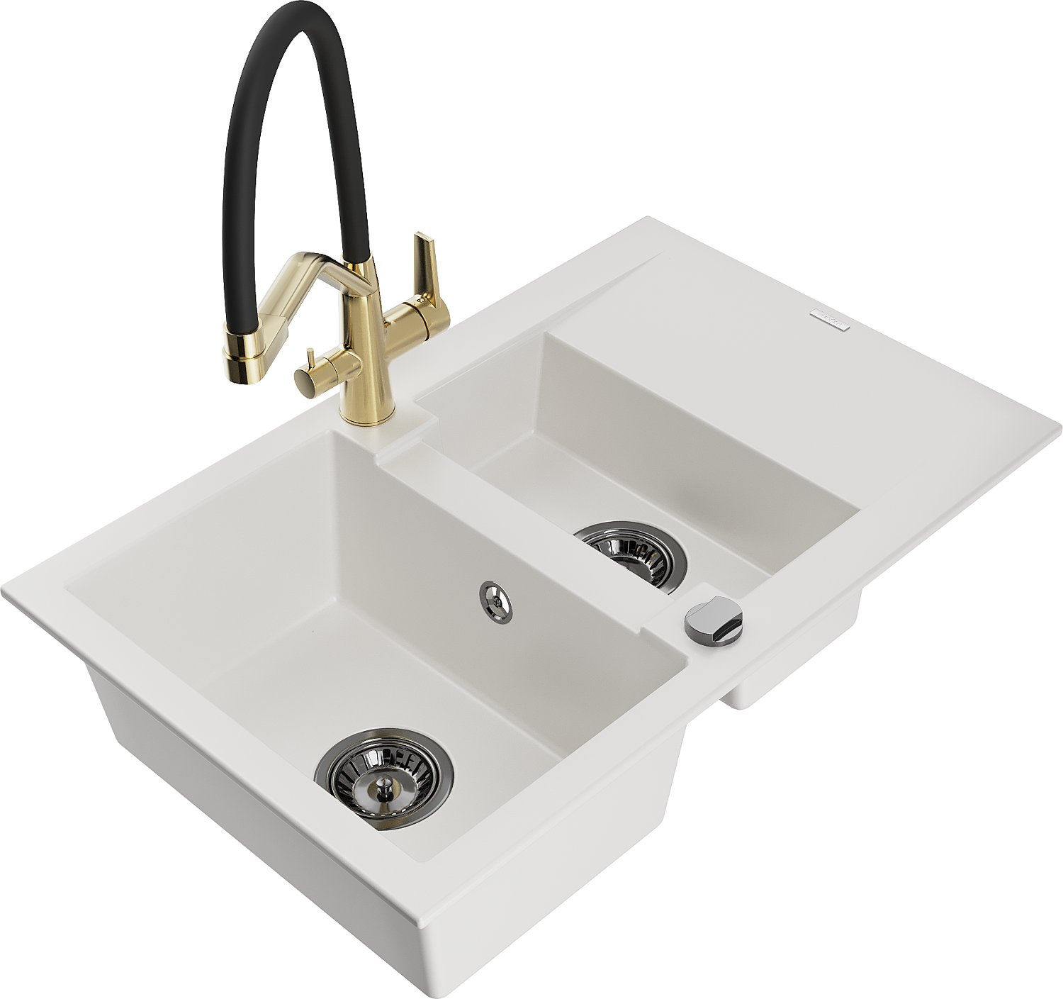 Mexen Gaspar zlewozmywak granitowy 1,5-komorowy z ociekaczem i baterią kuchenną Duo, biały - 6507-20-671701-57-B