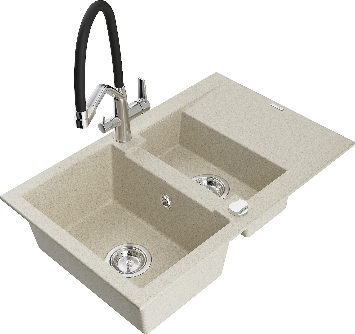 Mexen Gaspar zlewozmywak granitowy 1,5-komorowy z ociekaczem i baterią kuchenną Duo, beżowy - 6507-69-671701-07