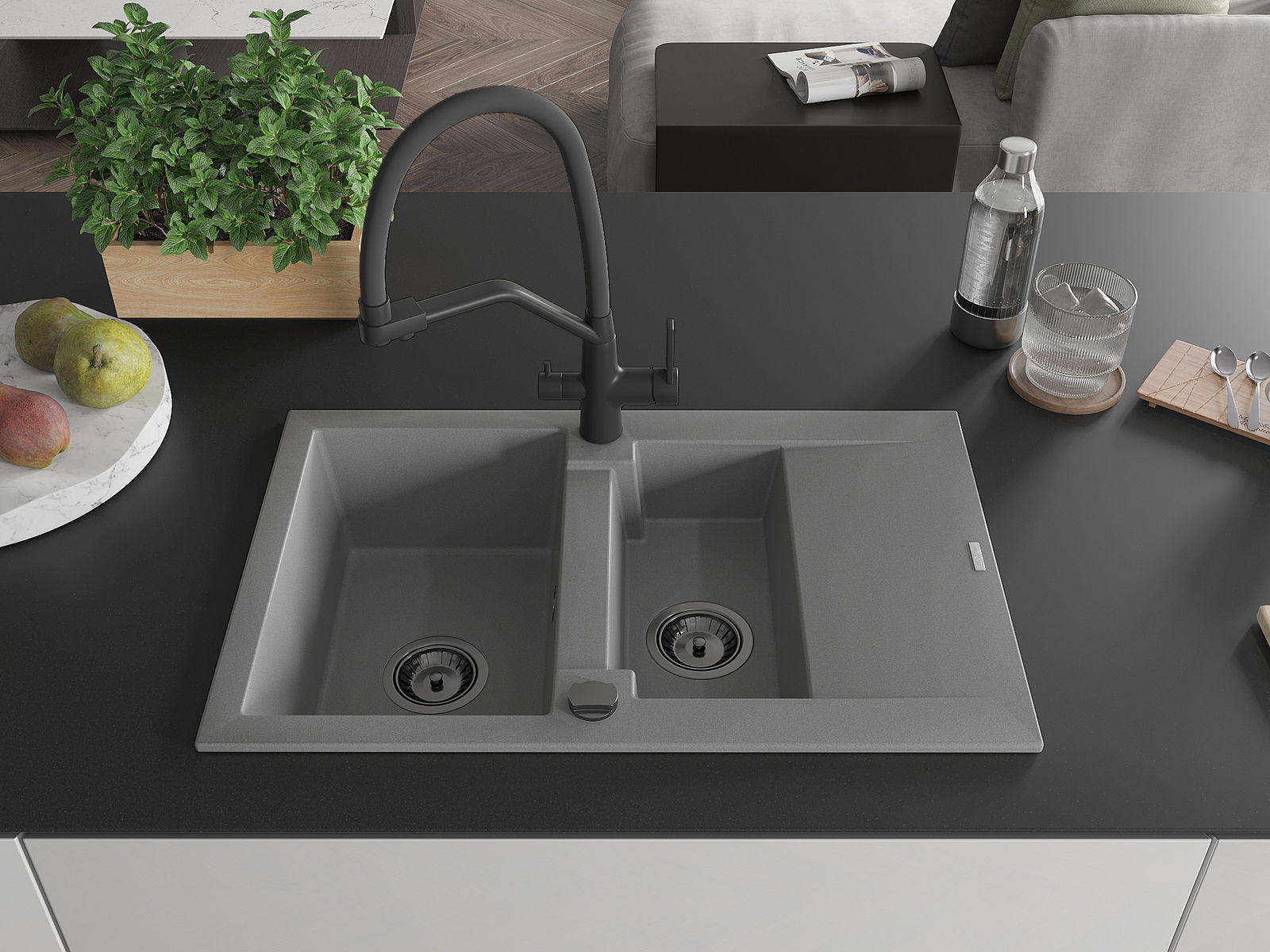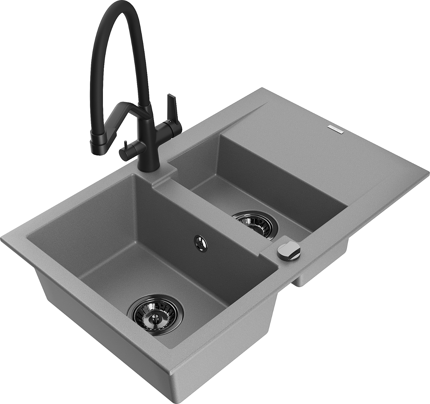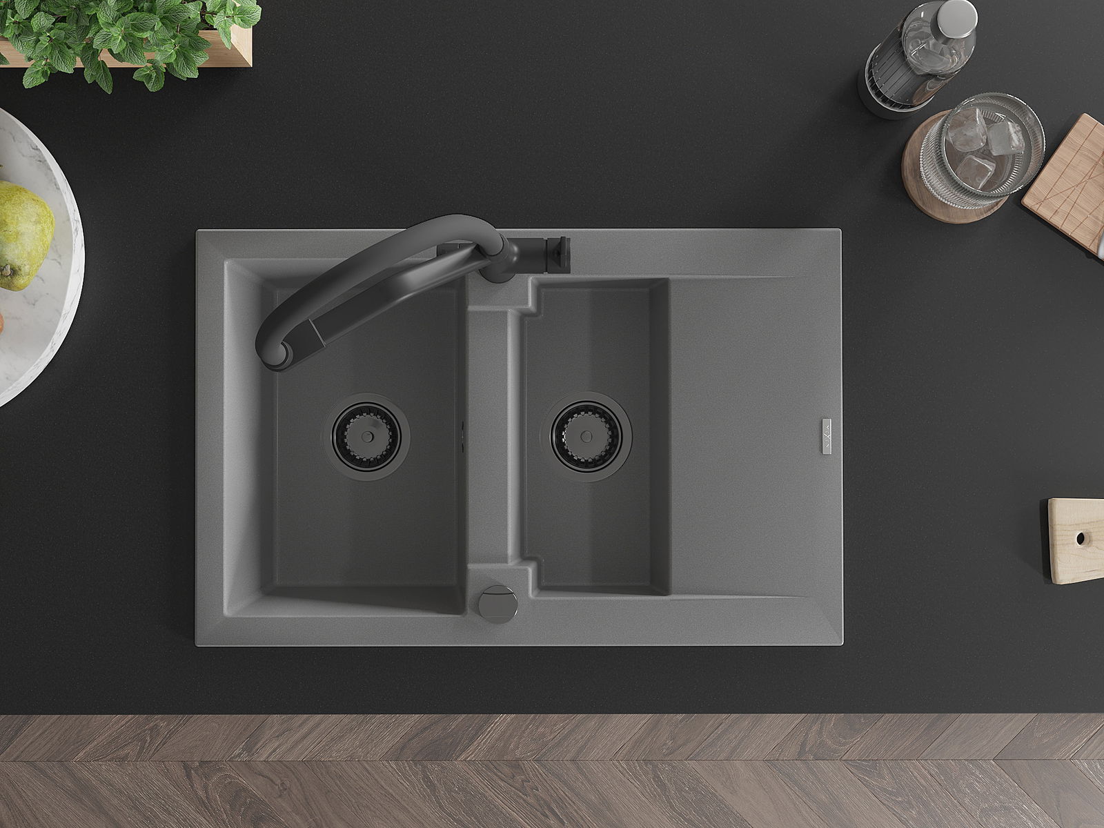 Mexen Gaspar zlewozmywak granitowy 1,5-komorowy z ociekaczem i baterią kuchenną Duo, szary - 6507-71-671701-70-B