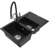 Mexen Gaspar zlewozmywak granitowy 1,5-komorowy z ociekaczem i baterią kuchenną Duo, czarny/srebrny metalik - 6507-73-671701-07