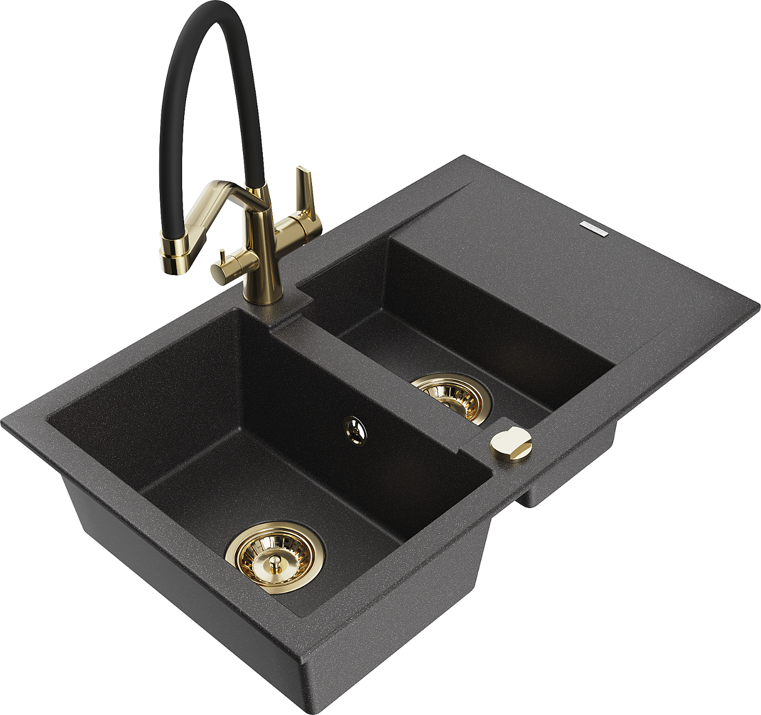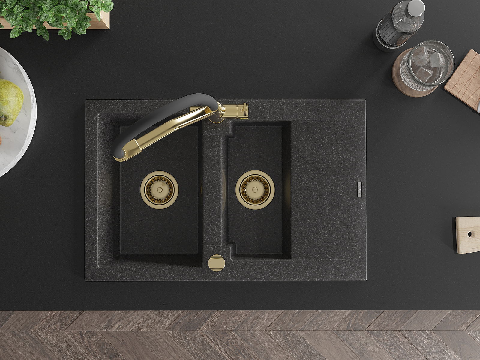 Mexen Gaspar zlewozmywak granitowy 1,5-komorowy z ociekaczem i baterią kuchenną Duo, czarny nakrapiany - 6507-76-671701-57-G