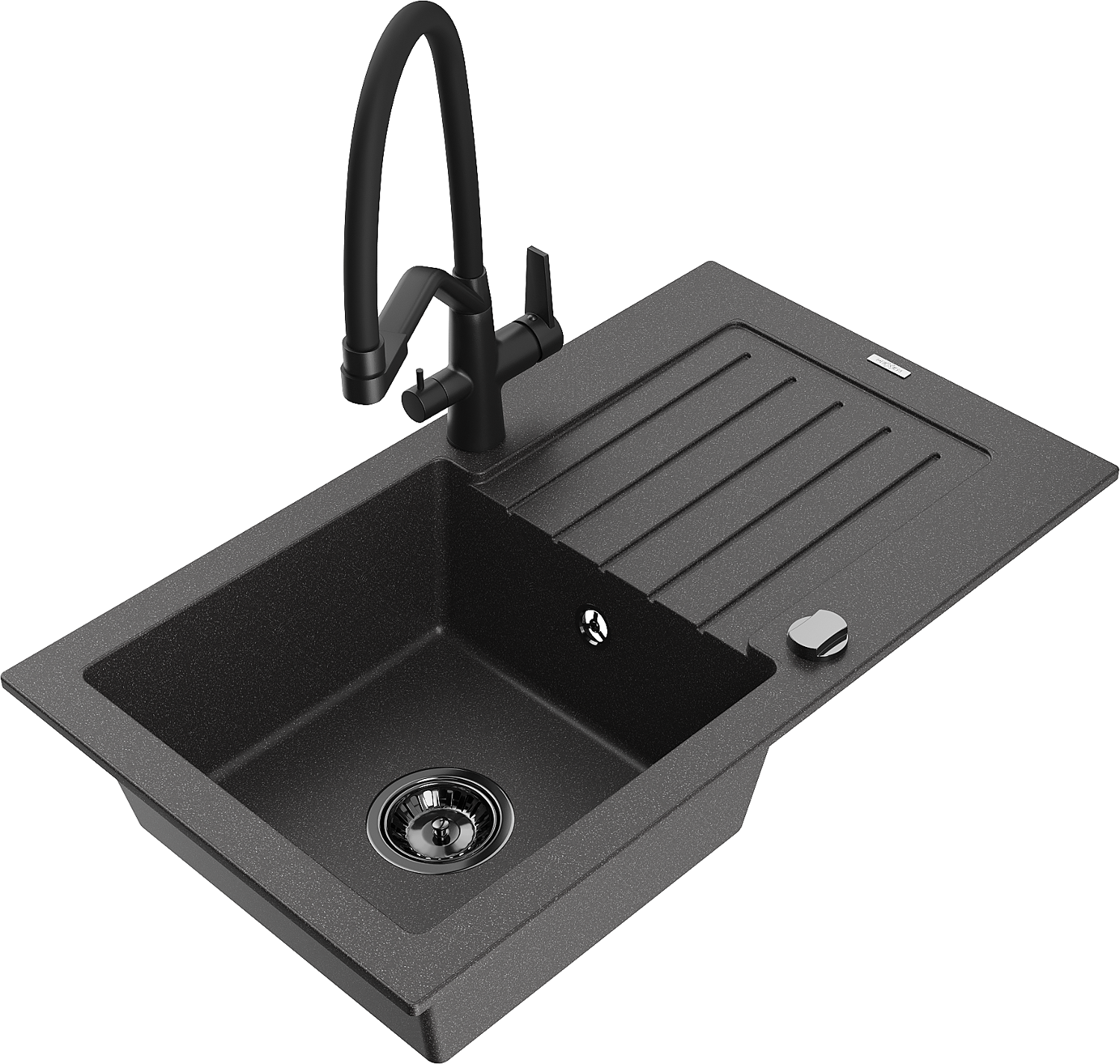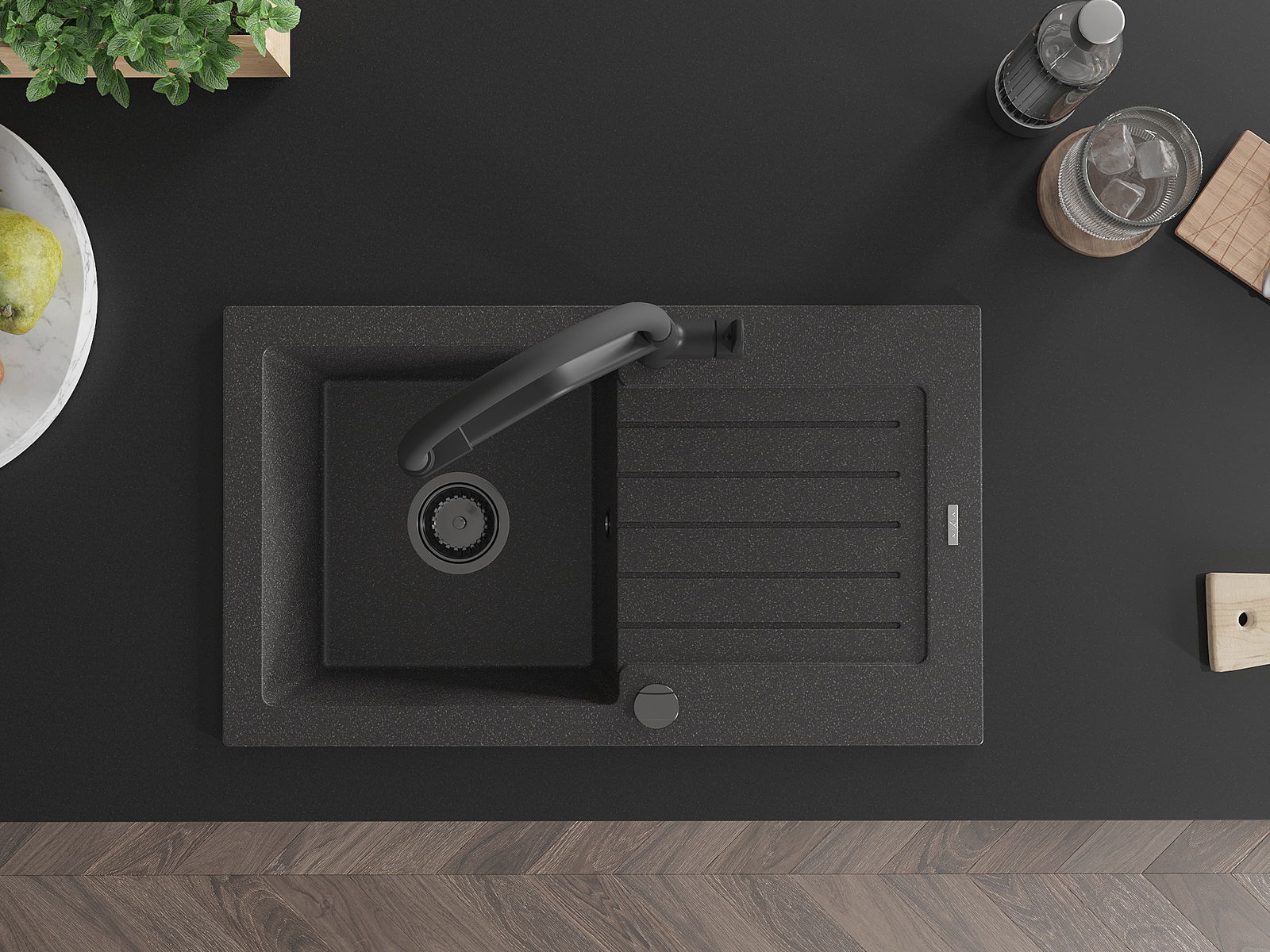 Mexen Pablo zlewozmywak granitowy 1-komorowy z ociekaczem i baterią kuchenną Duo, czarny nakrapiany - 6510-76-671701-70-B