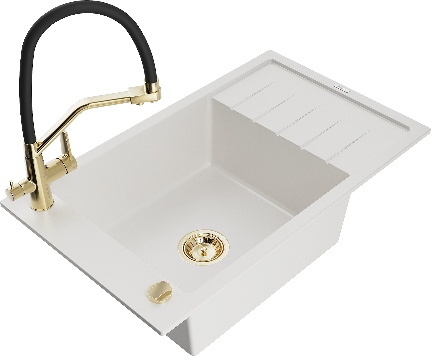 Mexen Elias zlewozmywak granitowy 1-komorowy z ociekaczem i baterią kuchenną Duo, biały - 6511-20-671701-57-G