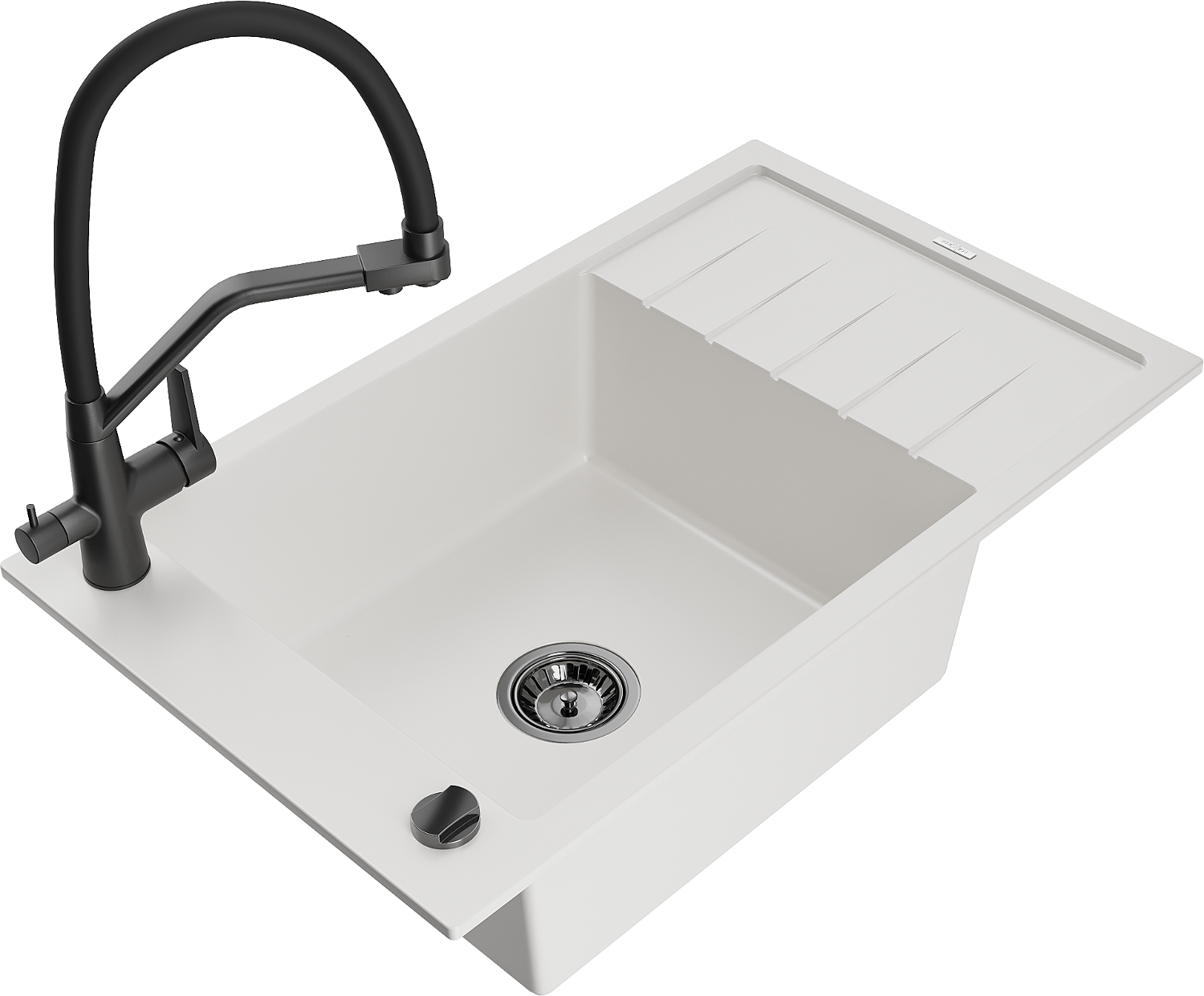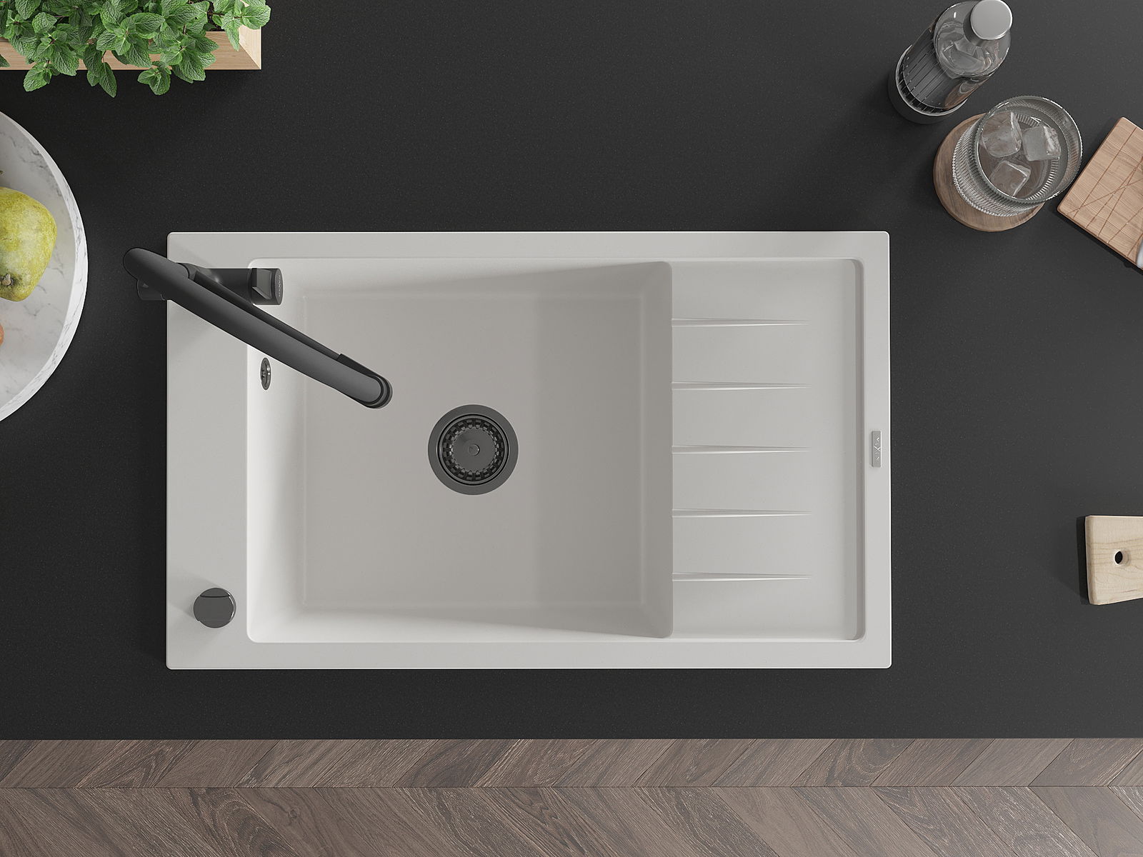 Mexen Elias zlewozmywak granitowy 1-komorowy z ociekaczem i baterią kuchenną Duo, biały - 6511-20-671701-70-B