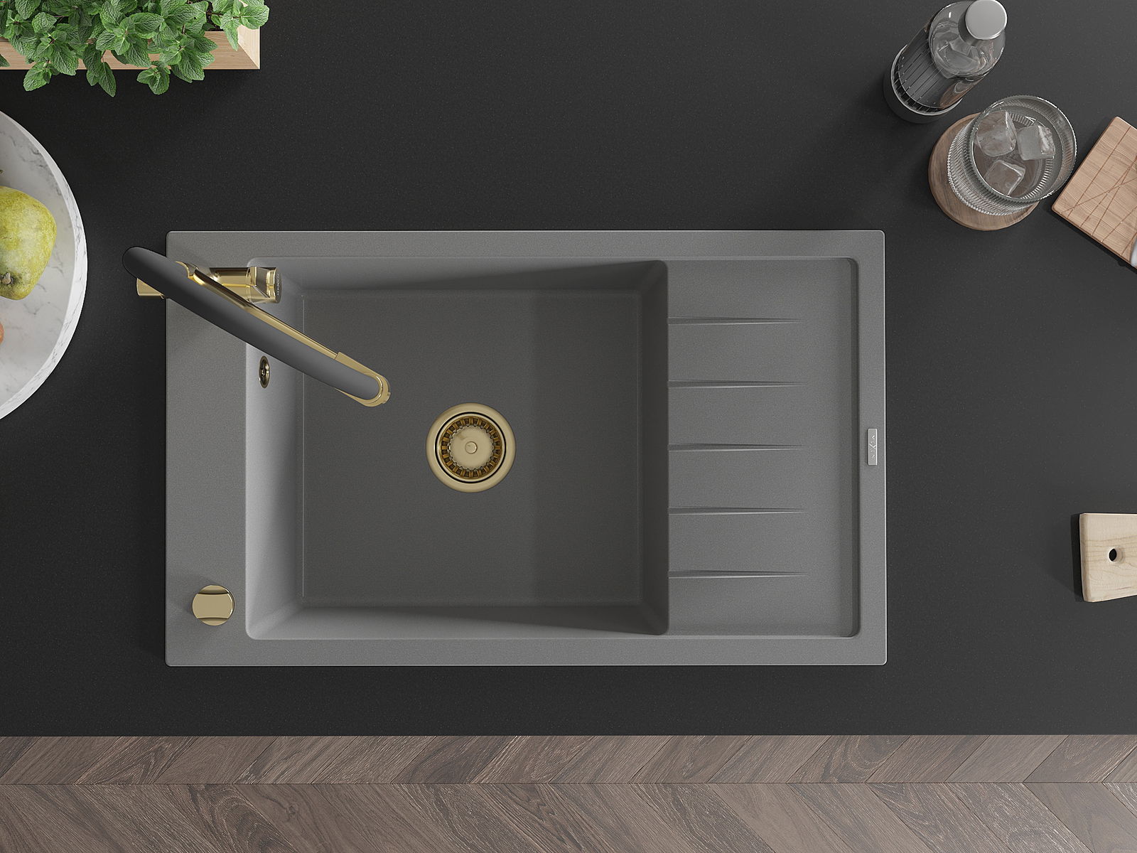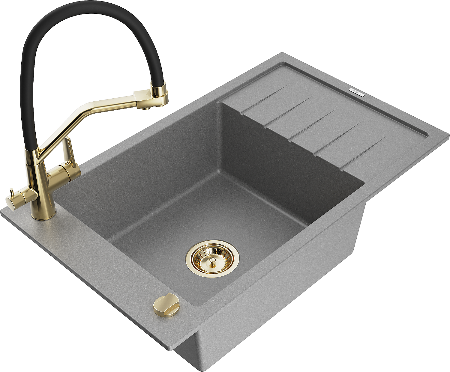 Mexen Elias zlewozmywak granitowy 1-komorowy z ociekaczem i baterią kuchenną Duo, szary - 6511-71-671701-57-G