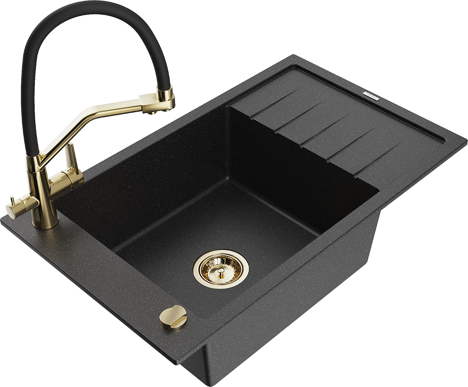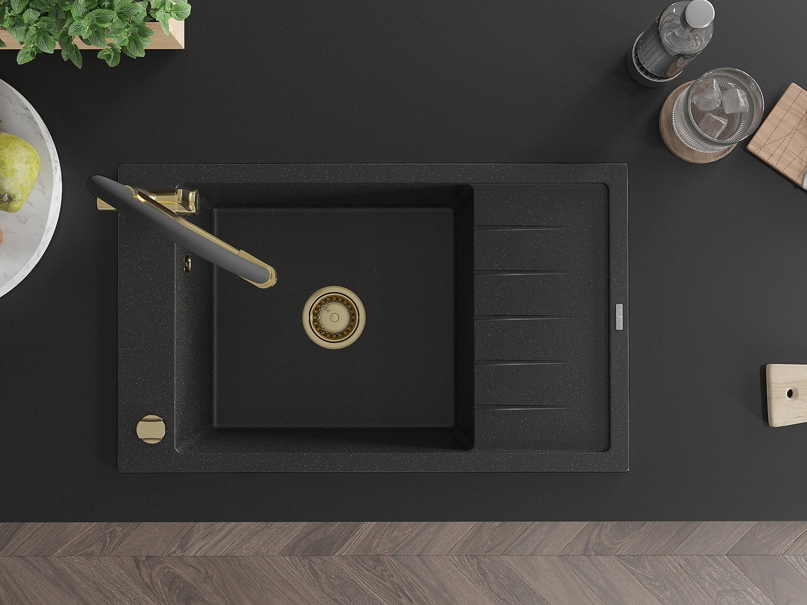 Mexen Elias zlewozmywak granitowy 1-komorowy z ociekaczem i baterią kuchenną Duo, czarny/srebrny metalik - 6511-73-671701-57-G