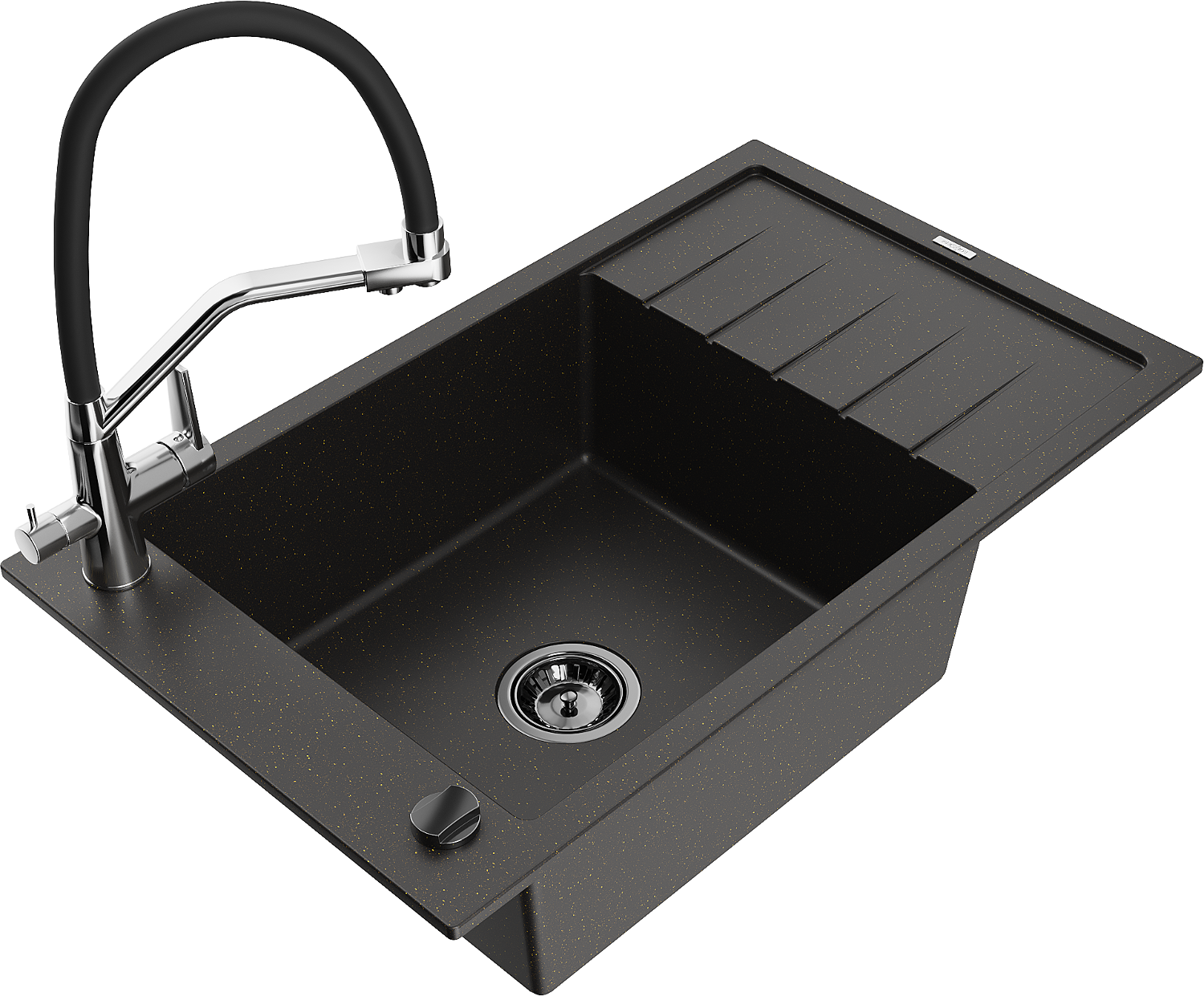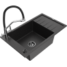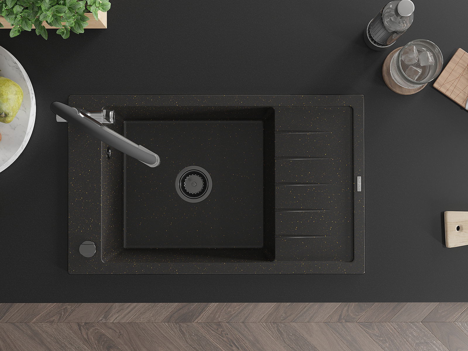 Mexen Elias zlewozmywak granitowy 1-komorowy z ociekaczem i baterią kuchenną Duo, czarny/złoty metalik - 6511-75-671701-07-B