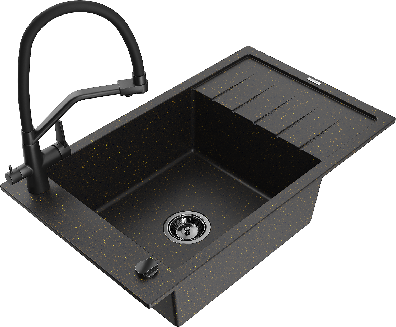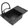 Mexen Elias zlewozmywak granitowy 1-komorowy z ociekaczem i baterią kuchenną Duo, czarny/złoty metalik - 6511-75-671701-70-B