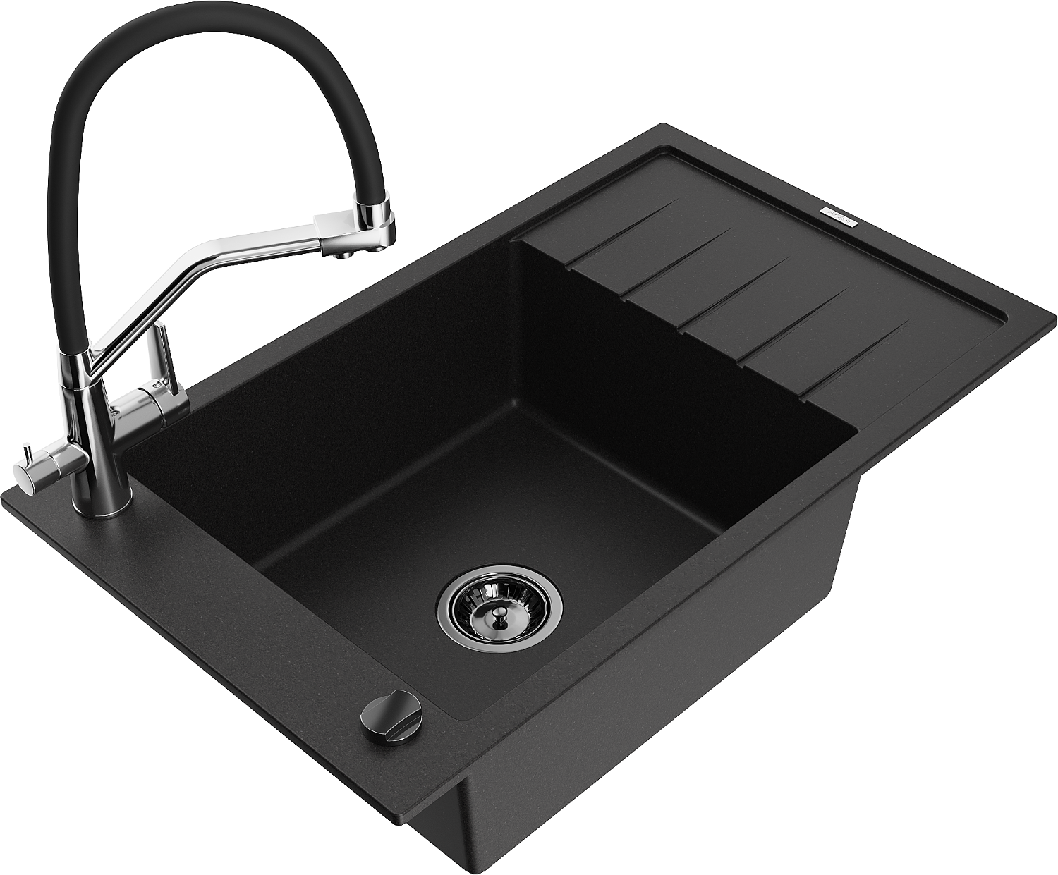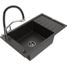 Mexen Elias zlewozmywak granitowy 1-komorowy z ociekaczem i baterią kuchenną Duo, czarny - 6511-77-671701-07-B