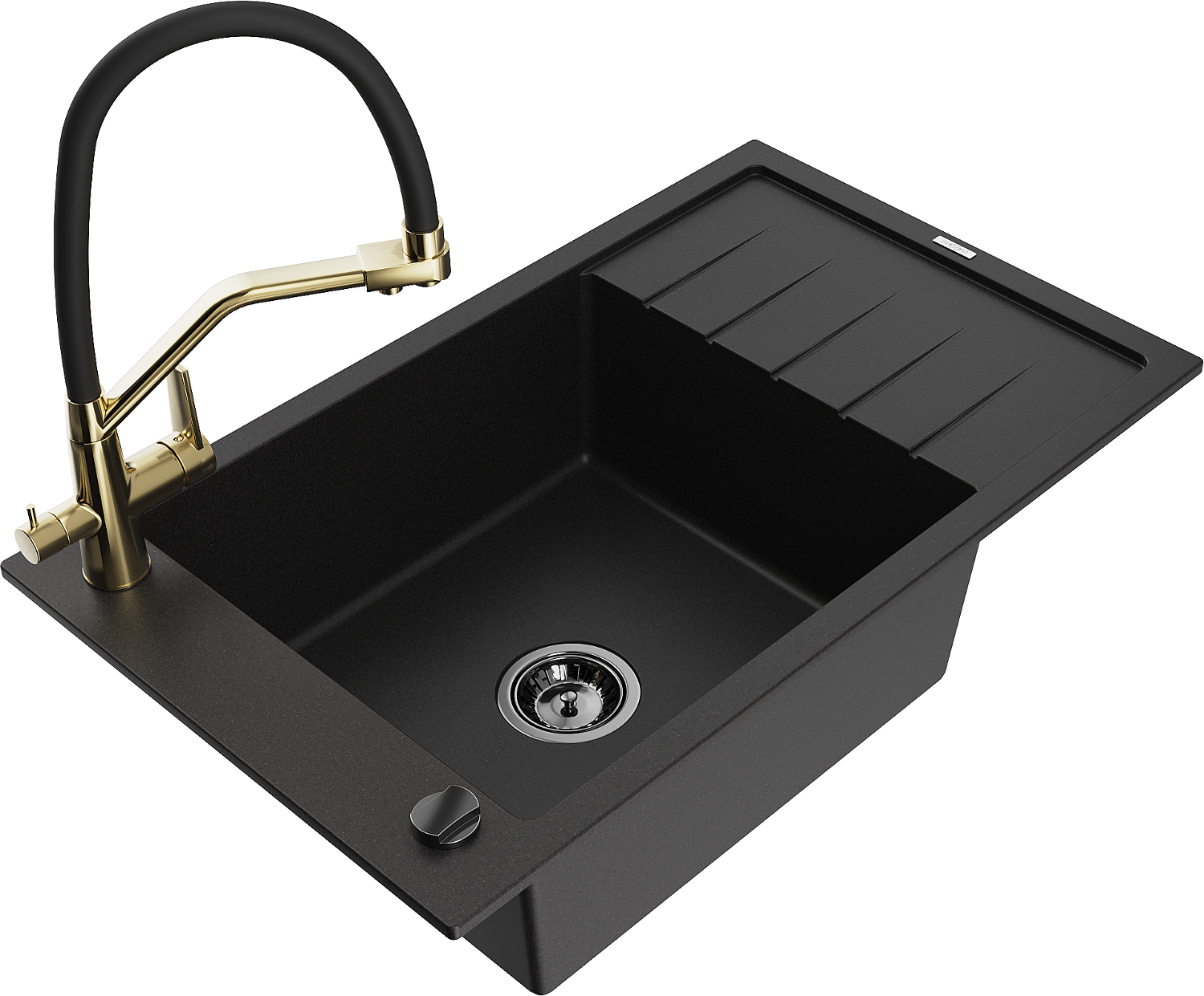 Mexen Elias zlewozmywak granitowy 1-komorowy z ociekaczem i baterią kuchenną Duo, czarny - 6511-77-671701-57-B