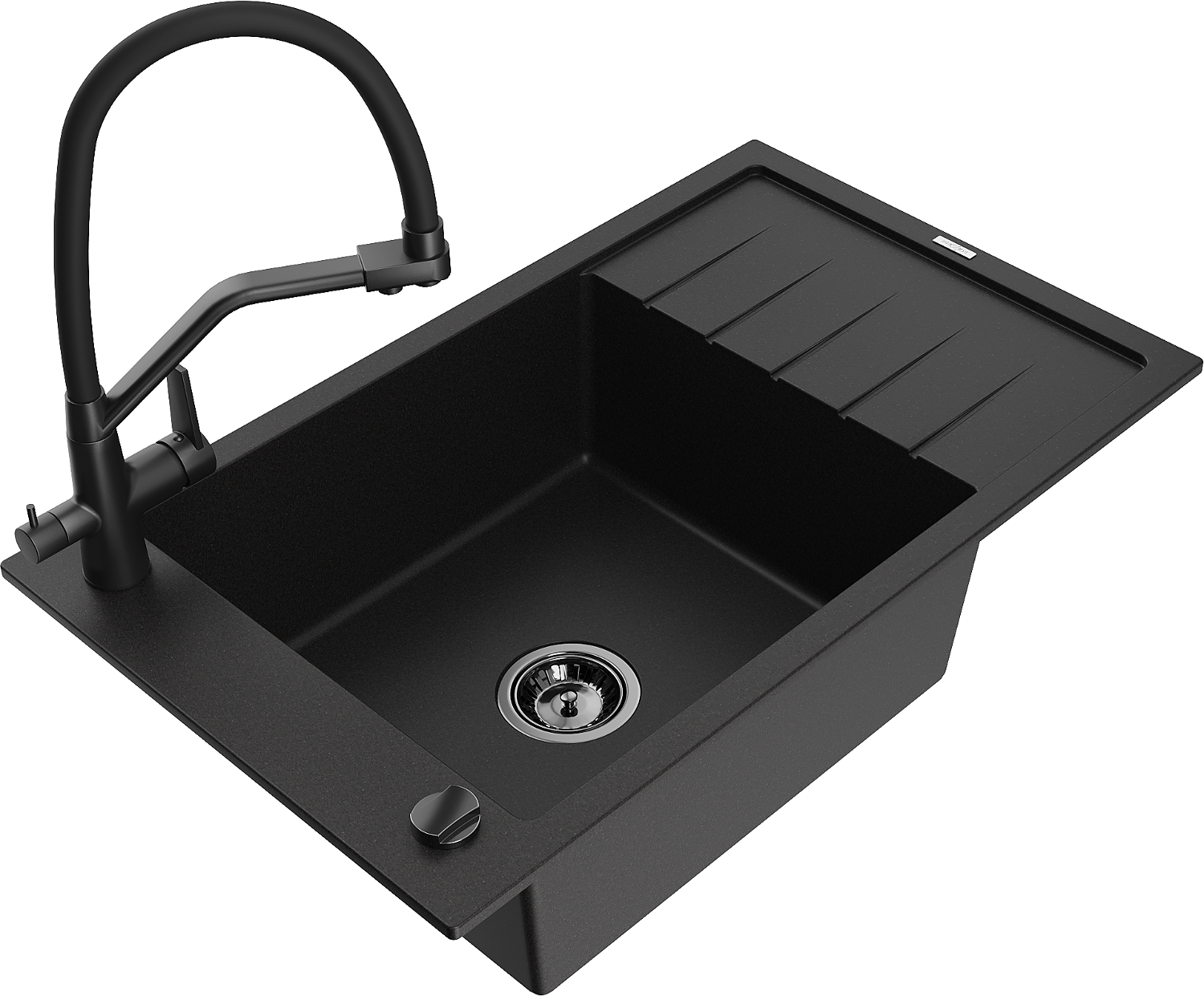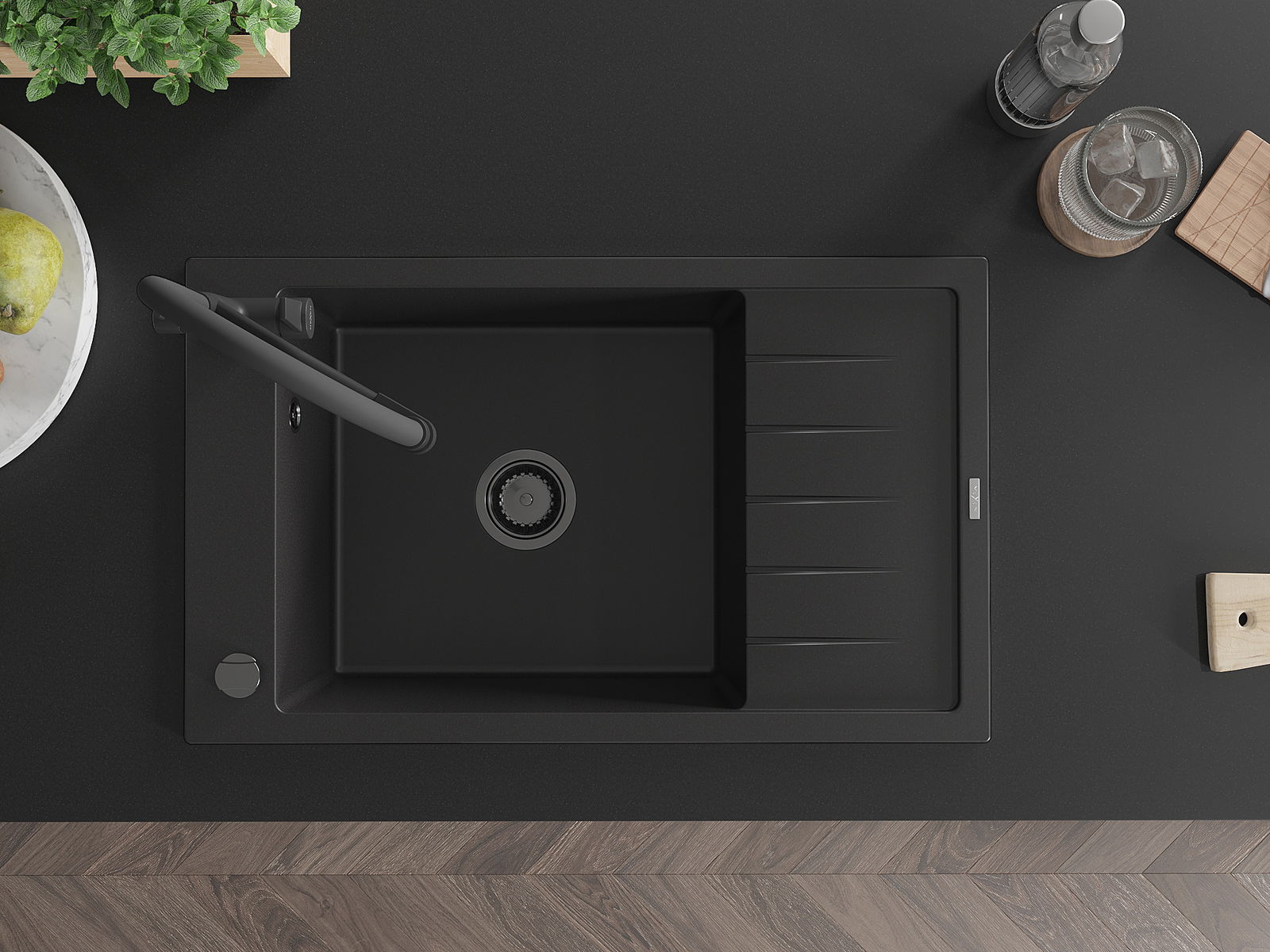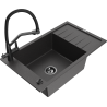 Mexen Elias zlewozmywak granitowy 1-komorowy z ociekaczem i baterią kuchenną Duo, czarny - 6511-77-671701-70-B
