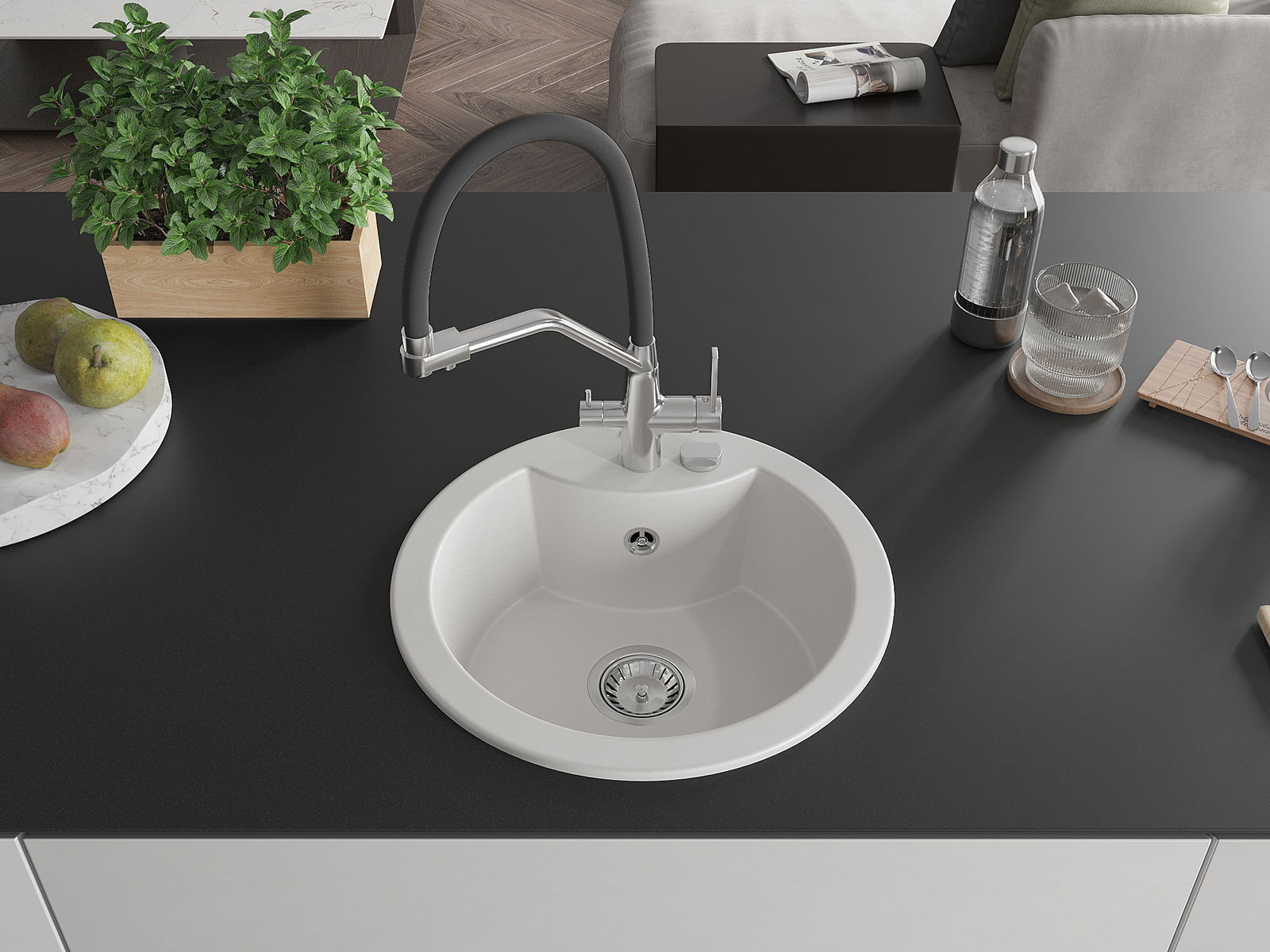 Zlewozmywak został wykonany z wysokiej jakości granitu. Stanowi eleganckie, a przede wszystkim praktyczne uzupełnienie każdej kuchni, niezależnie od jej stylu. Wysoka jakość oraz trwałość granitu zapewniają wieloletnie użytkowanie.