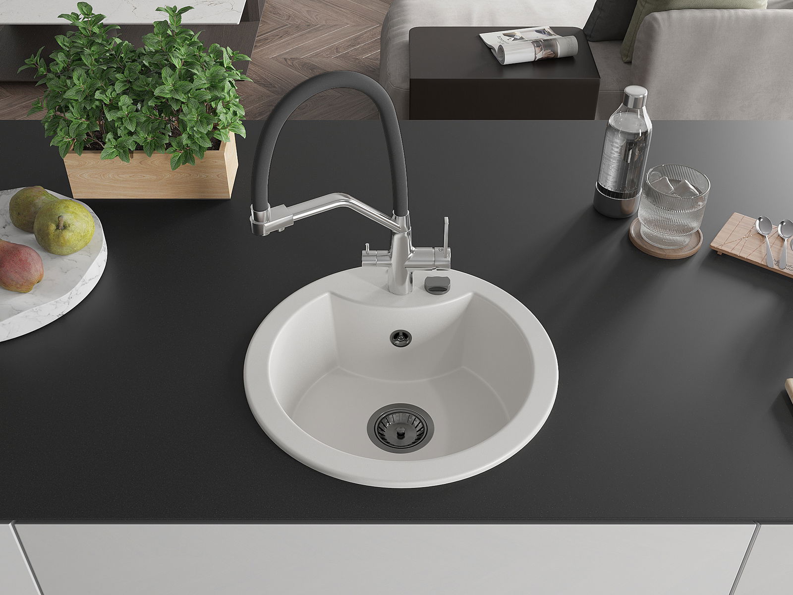 Zlewozmywak został wykonany z wysokiej jakości granitu. Stanowi eleganckie, a przede wszystkim praktyczne uzupełnienie każdej kuchni, niezależnie od jej stylu. Wysoka jakość oraz trwałość granitu zapewniają wieloletnie użytkowanie.