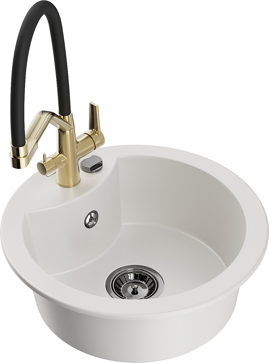 Mexen Diego zlewozmywak granitowy 1-komorowy z baterią kuchenną Duo, biały - 6512-20-671701-57-B