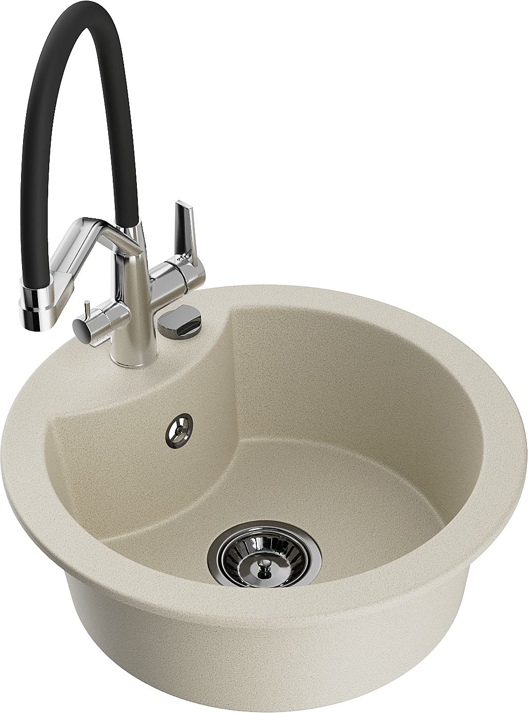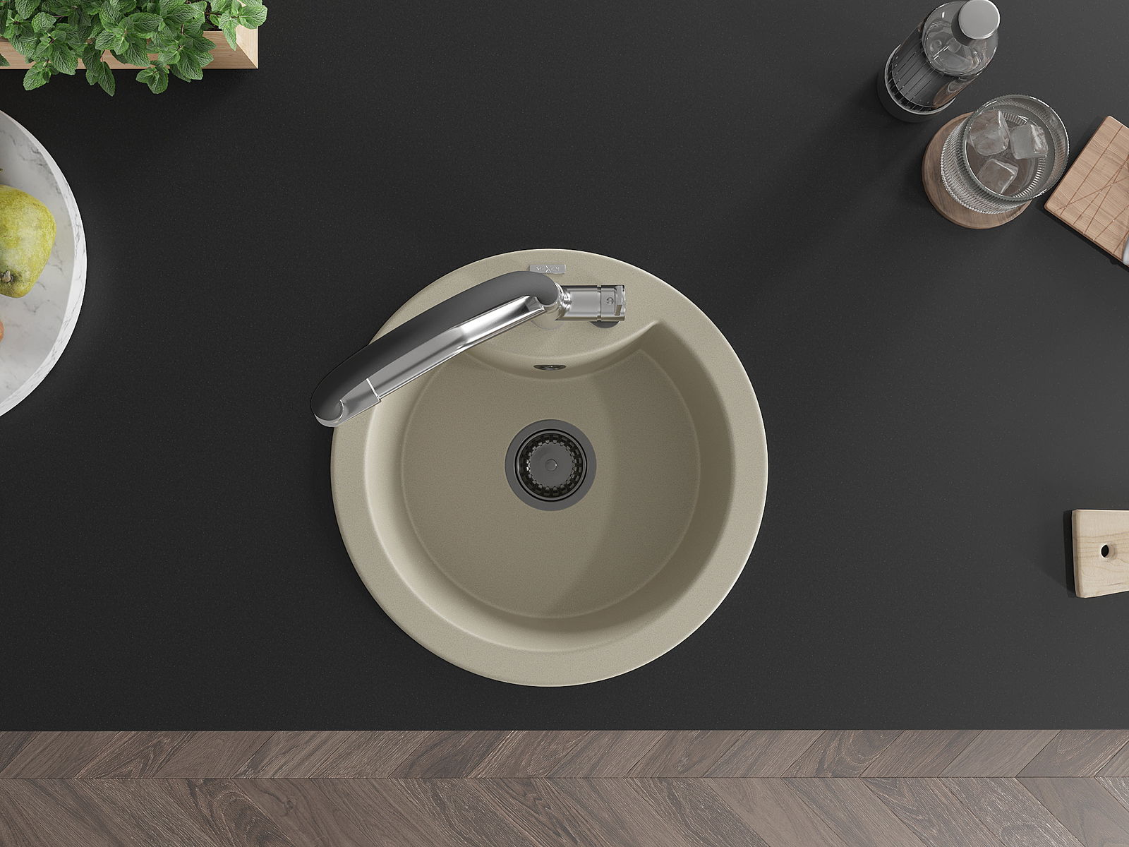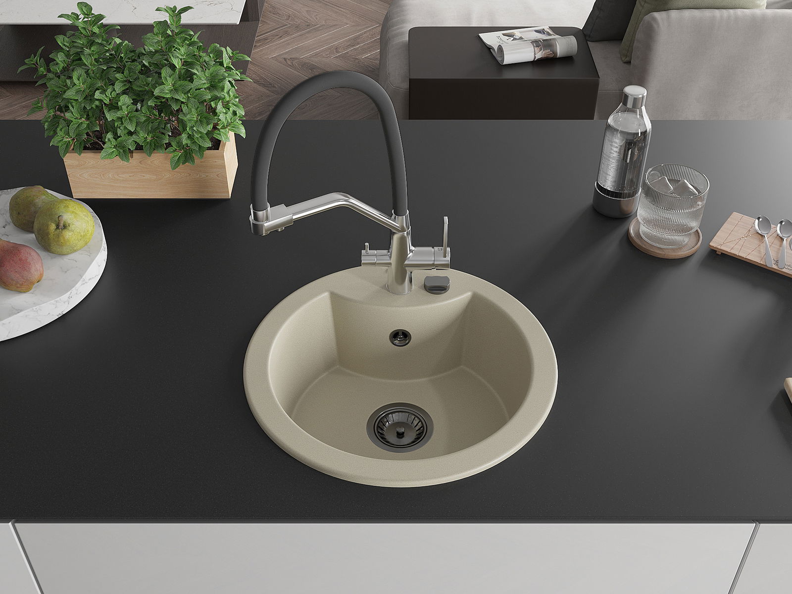 Mexen Diego zlewozmywak granitowy 1-komorowy z baterią kuchenną Duo, beżowy - 6512-69-671701-07-B