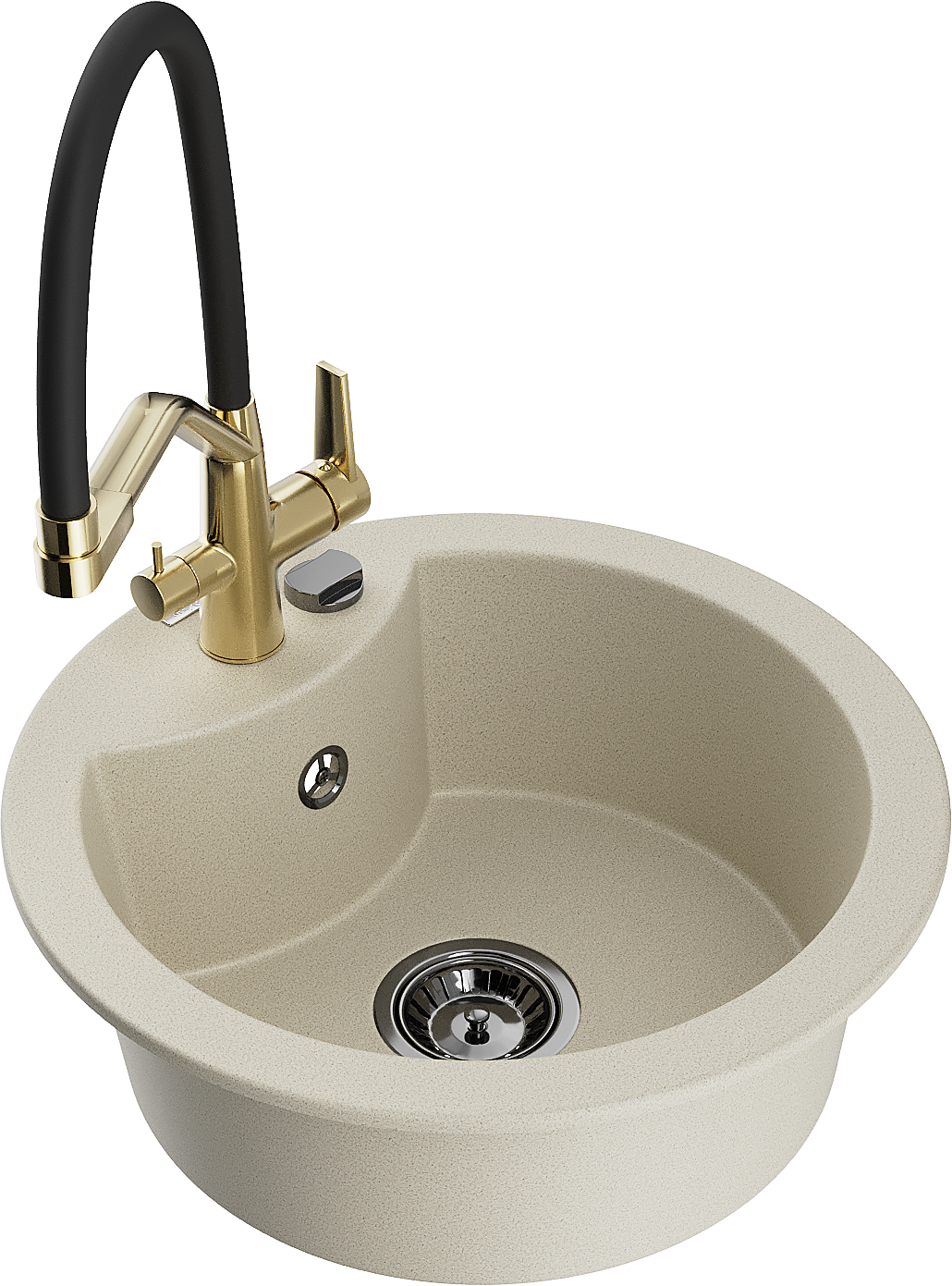 Mexen Diego zlewozmywak granitowy 1-komorowy z baterią kuchenną Duo, beżowy - 6512-69-671701-57-B