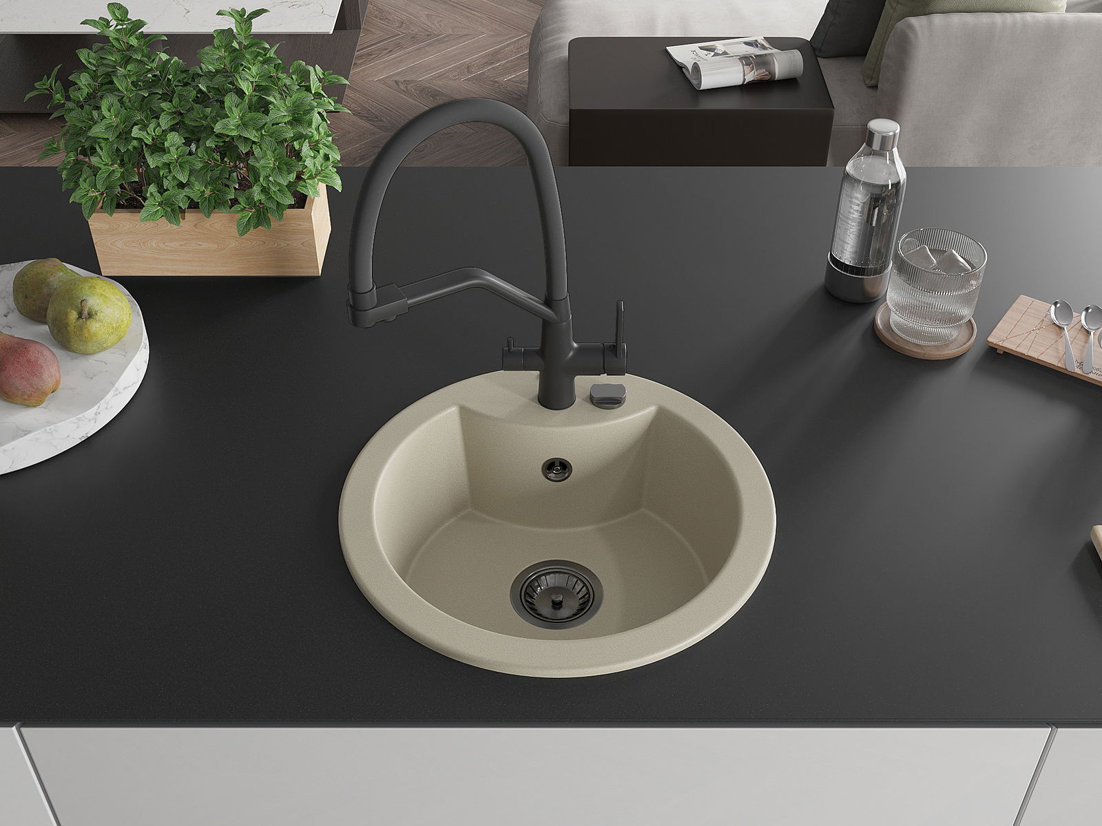 Zlewozmywak został wykonany z wysokiej jakości granitu. Stanowi eleganckie, a przede wszystkim praktyczne uzupełnienie każdej kuchni, niezależnie od jej stylu. Wysoka jakość oraz trwałość granitu zapewniają wieloletnie użytkowanie.