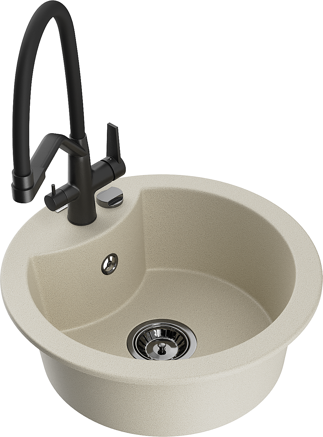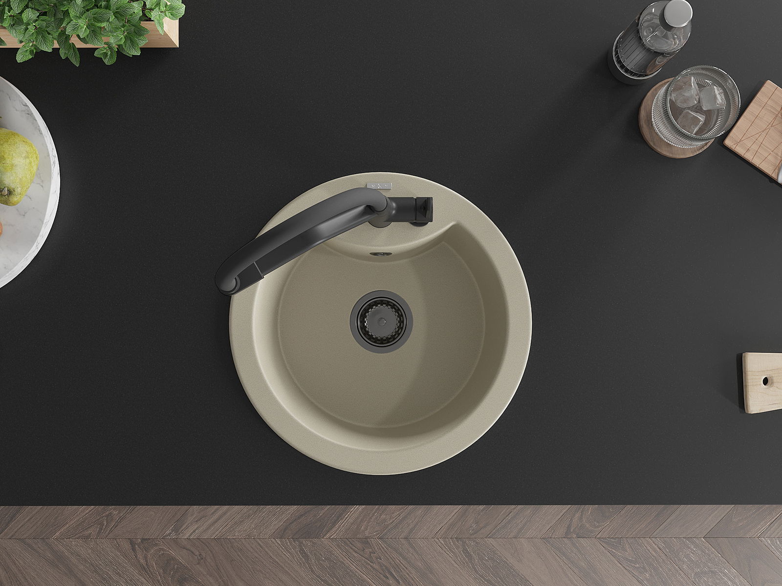 Mexen Diego zlewozmywak granitowy 1-komorowy z baterią kuchenną Duo, beżowy - 6512-69-671701-70-B