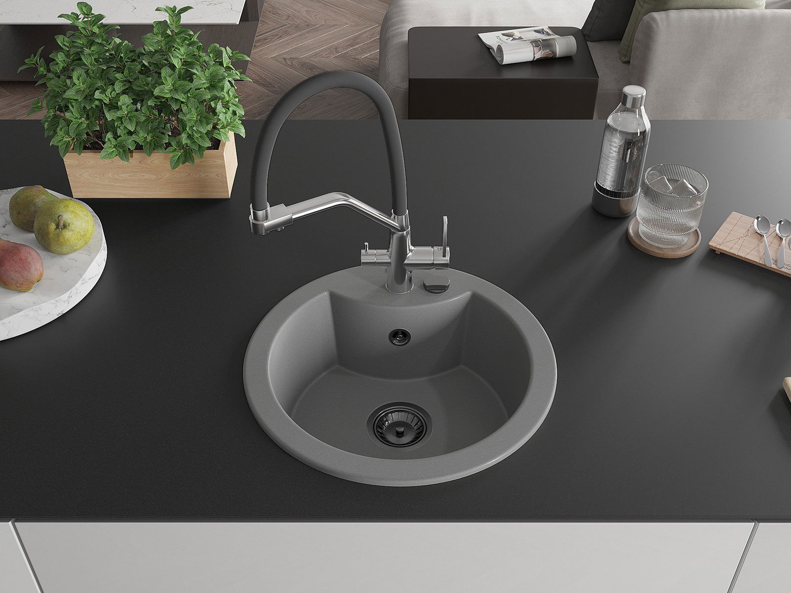 Mexen Diego zlewozmywak granitowy 1-komorowy z baterią kuchenną Duo, szary - 6512-71-671701-07-B