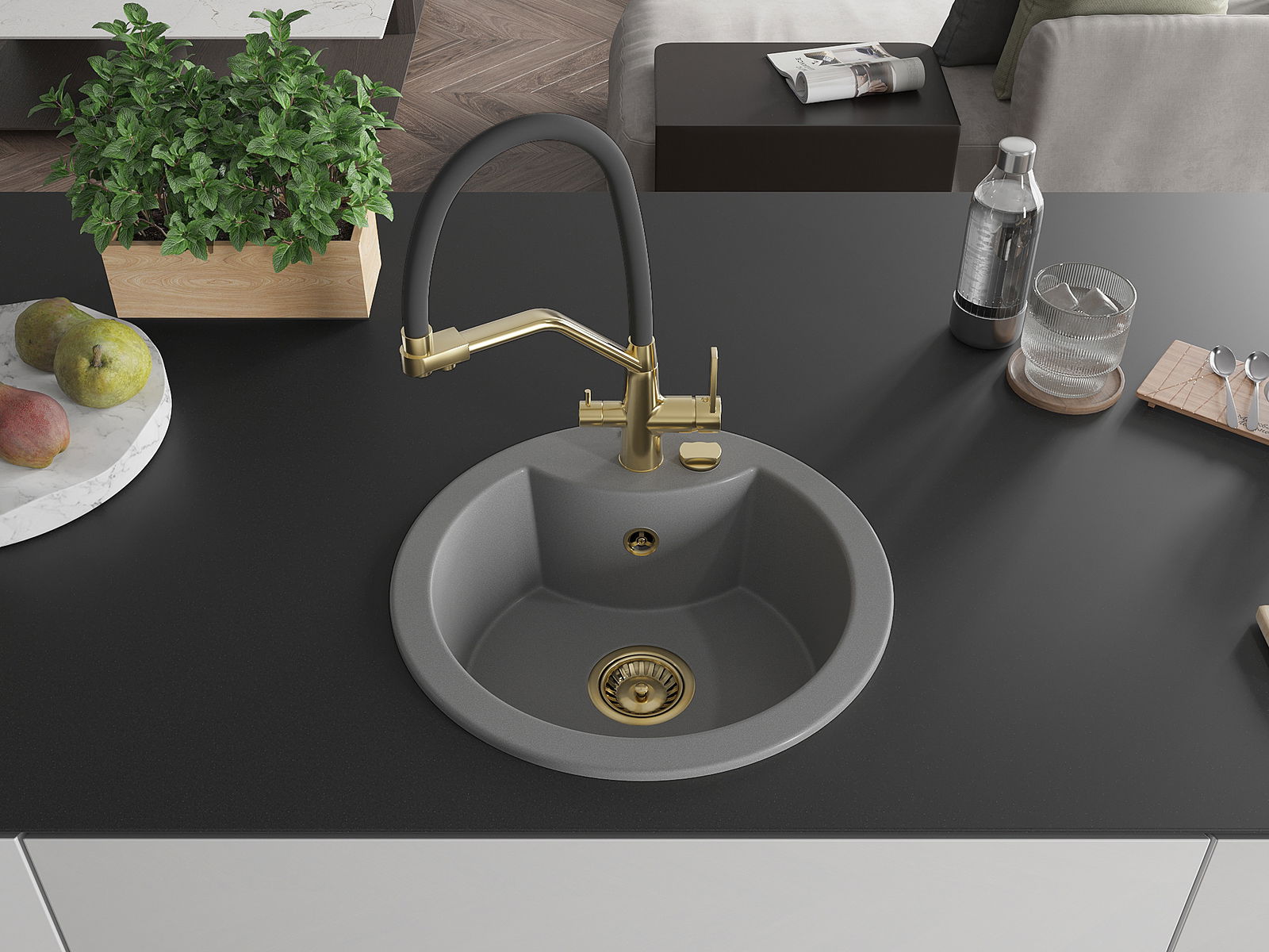 Mexen Diego zlewozmywak granitowy 1-komorowy z baterią kuchenną Duo, szary - 6512-71-671701-57-G