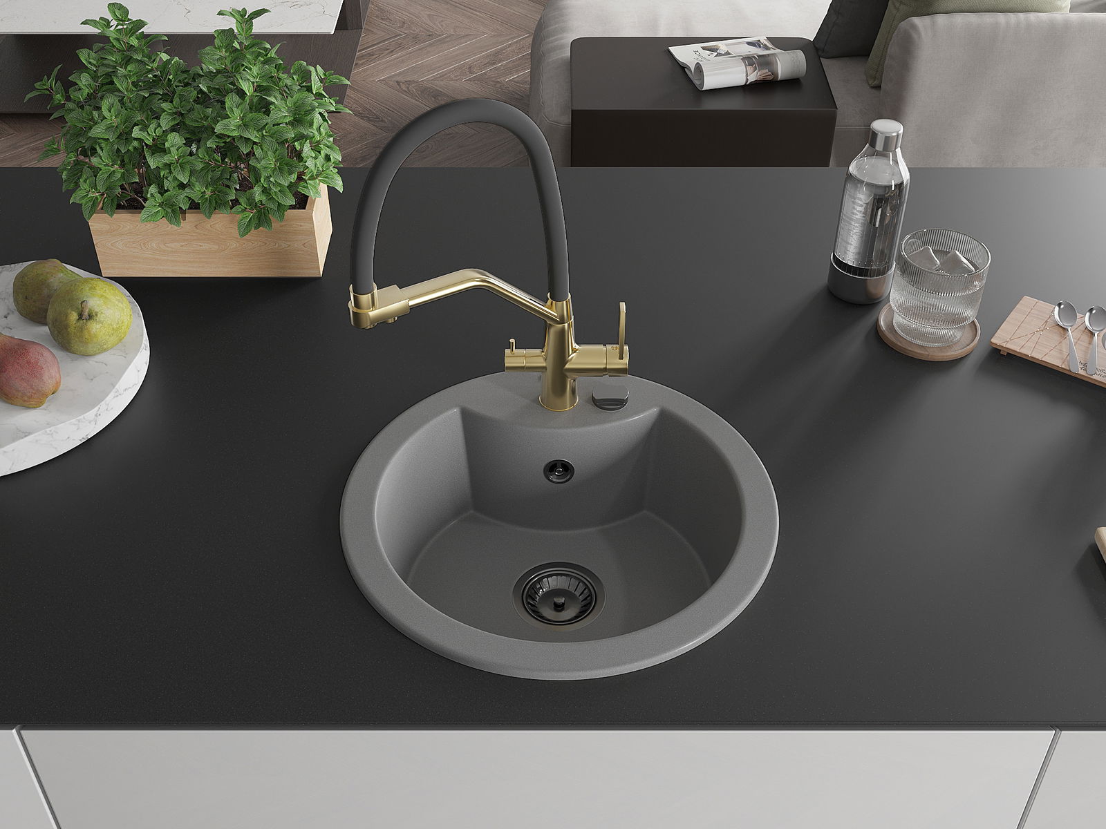 Zlewozmywak został wykonany z wysokiej jakości granitu. Stanowi eleganckie, a przede wszystkim praktyczne uzupełnienie każdej kuchni, niezależnie od jej stylu. Wysoka jakość oraz trwałość granitu zapewniają wieloletnie użytkowanie.