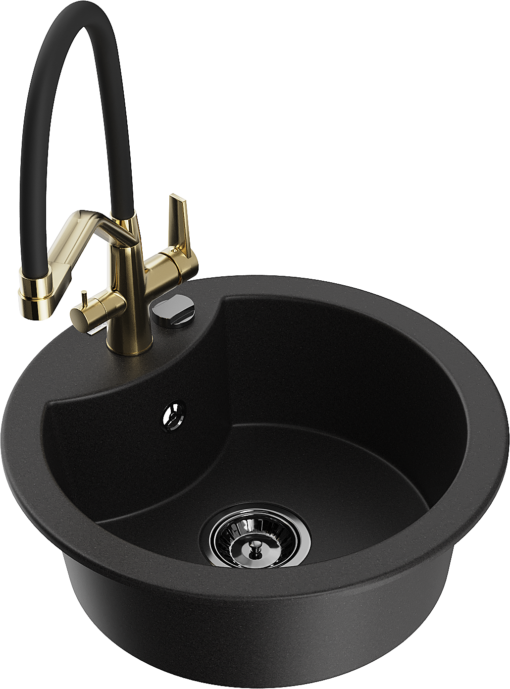 Mexen Diego zlewozmywak granitowy 1-komorowy z baterią kuchenną Duo, czarny - 6512-77-671701-57-B