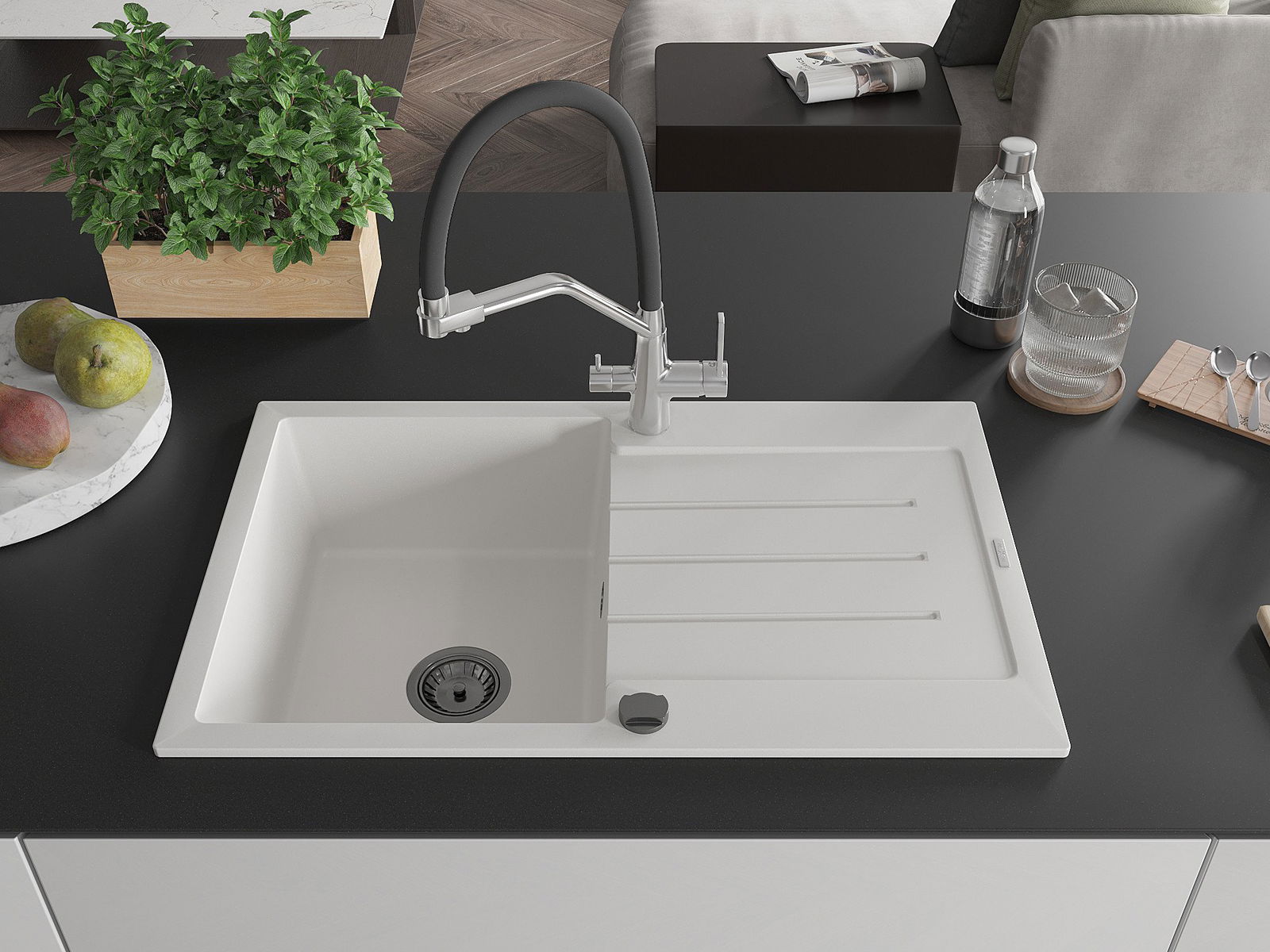 Dobrze zabezpieczona powierzchnia zlewozmywaka hamuje wnikanie zabrudzeń do jego wewnętrznych struktur. Dzięki temu utrzymanie zlewu w czystości jest jeszcze łatwiejsze, a jego powierzchnia zachowuje swoją estetykę na dłużej.