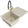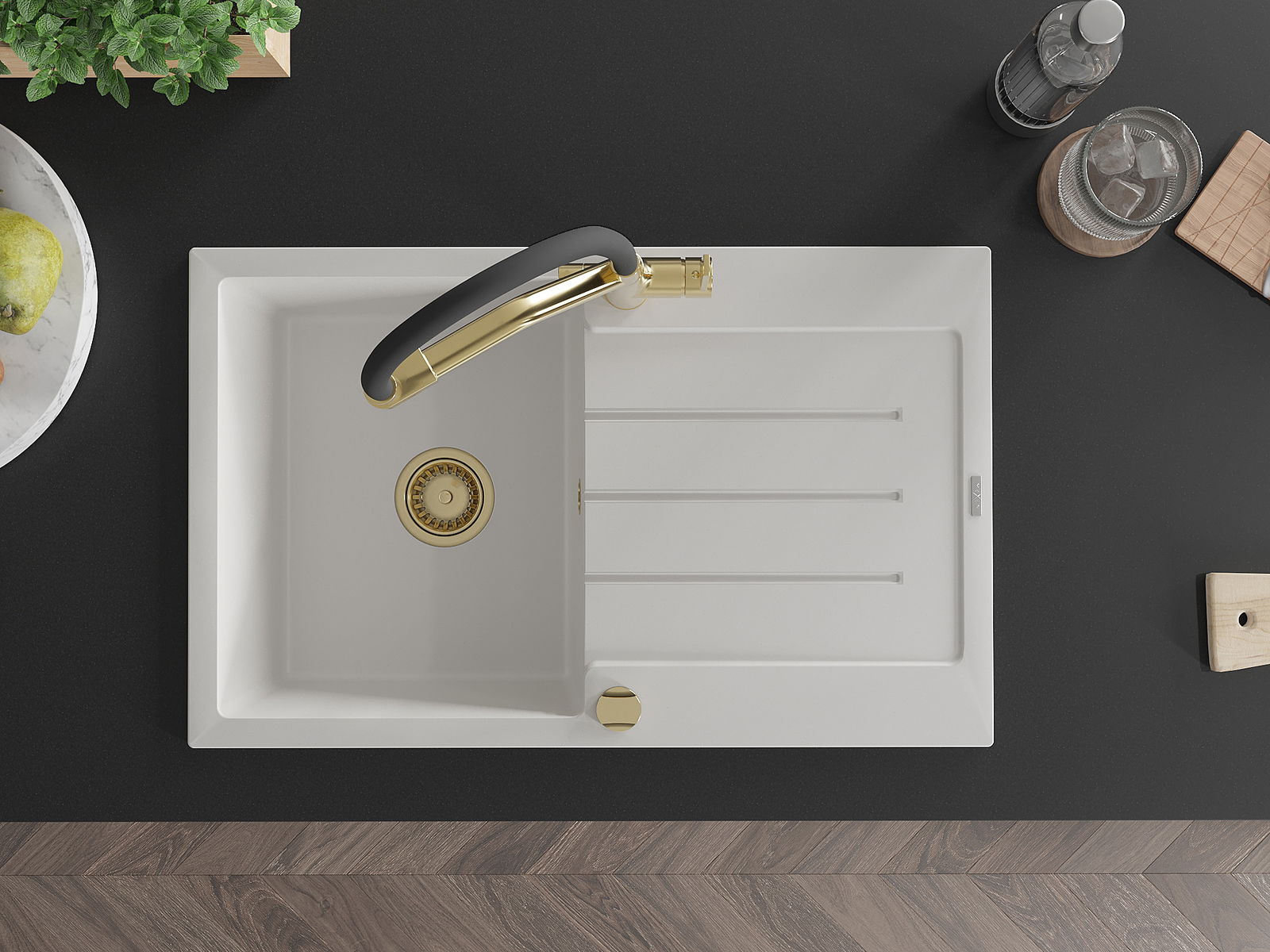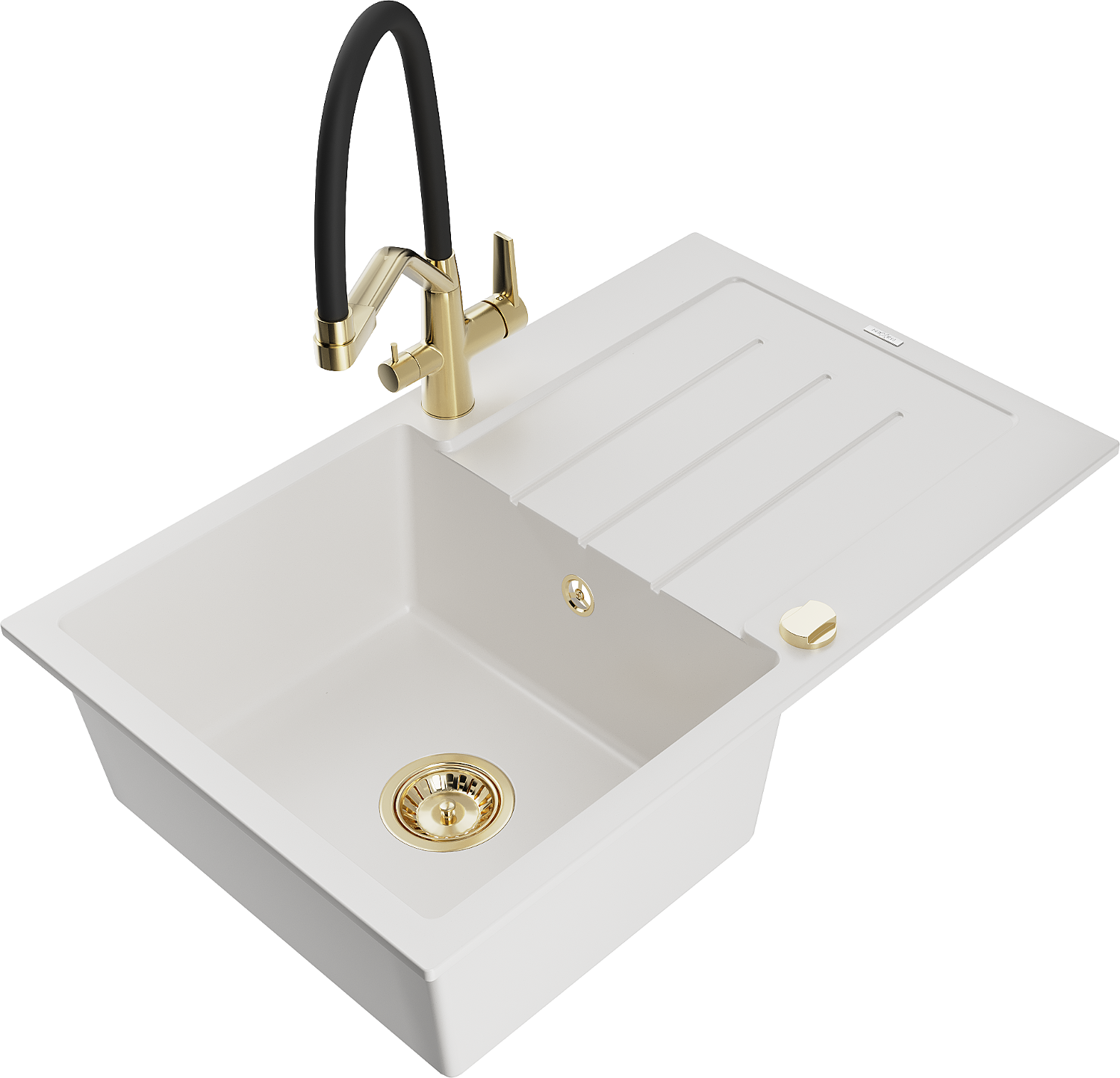 Mexen Bruno zlewozmywak granitowy 1-komorowy z ociekaczem i baterią kuchenną Duo, biały - 6513-20-671701-57-G