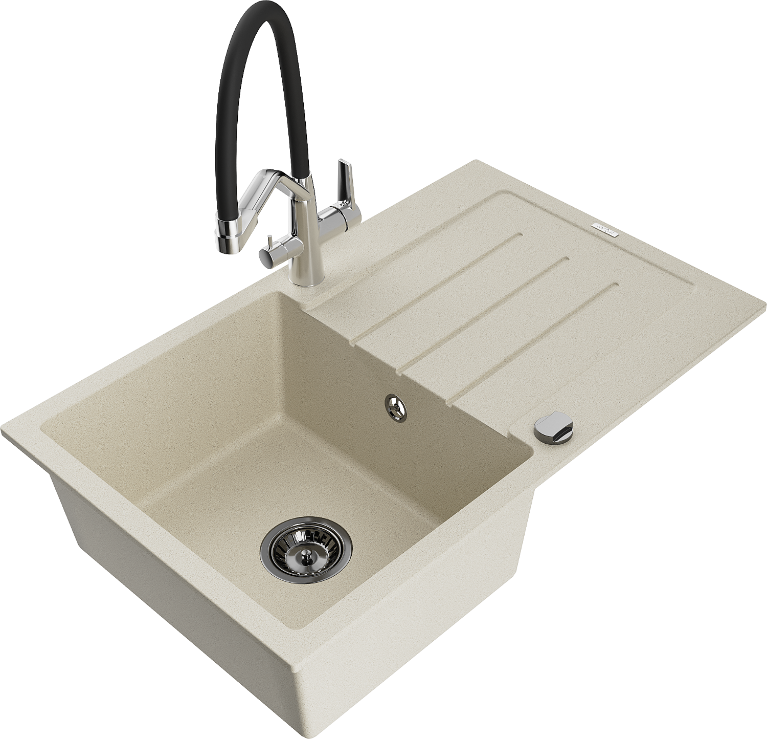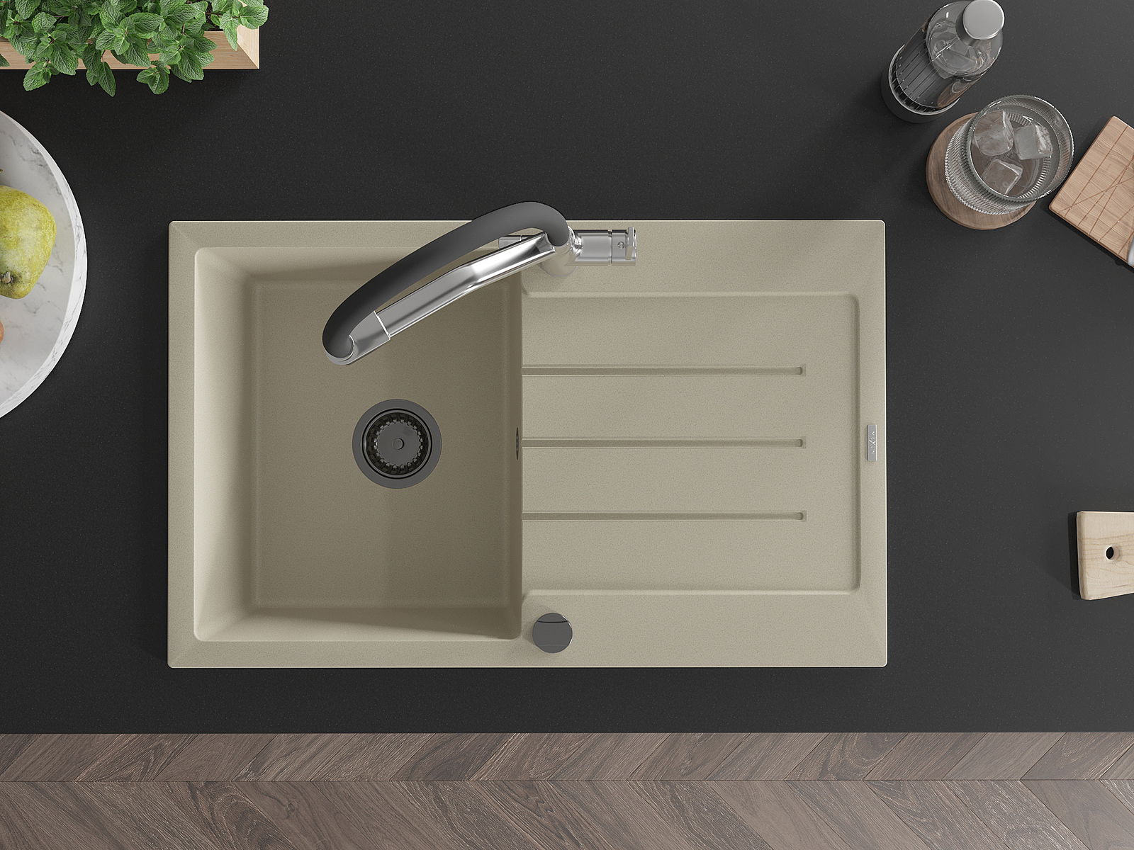 Mexen Bruno zlewozmywak granitowy 1-komorowy z ociekaczem i baterią kuchenną Duo, beżowy - 6513-69-671701-07-B