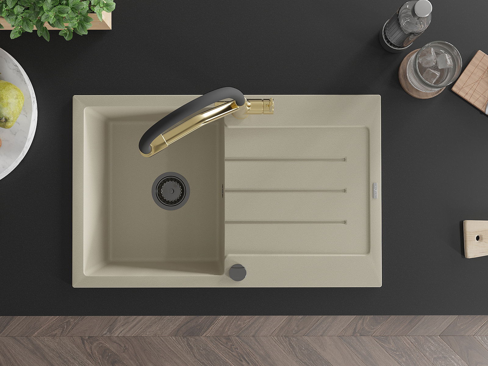 Zlewozmywak został wykonany z wysokiej jakości granitu. Stanowi eleganckie, a przede wszystkim praktyczne uzupełnienie każdej kuchni, niezależnie od jej stylu. Wysoka jakość oraz trwałość granitu zapewniają wieloletnie użytkowanie.