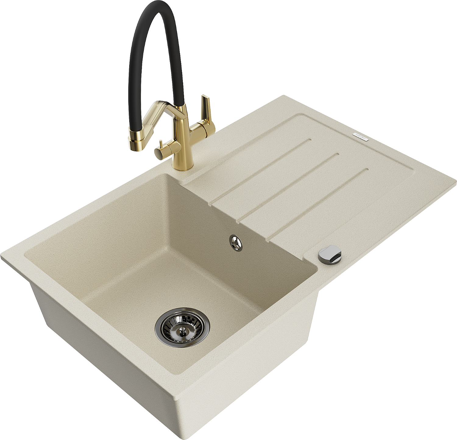 Mexen Bruno zlewozmywak granitowy 1-komorowy z ociekaczem i baterią kuchenną Duo, beżowy - 6513-69-671701-57-B