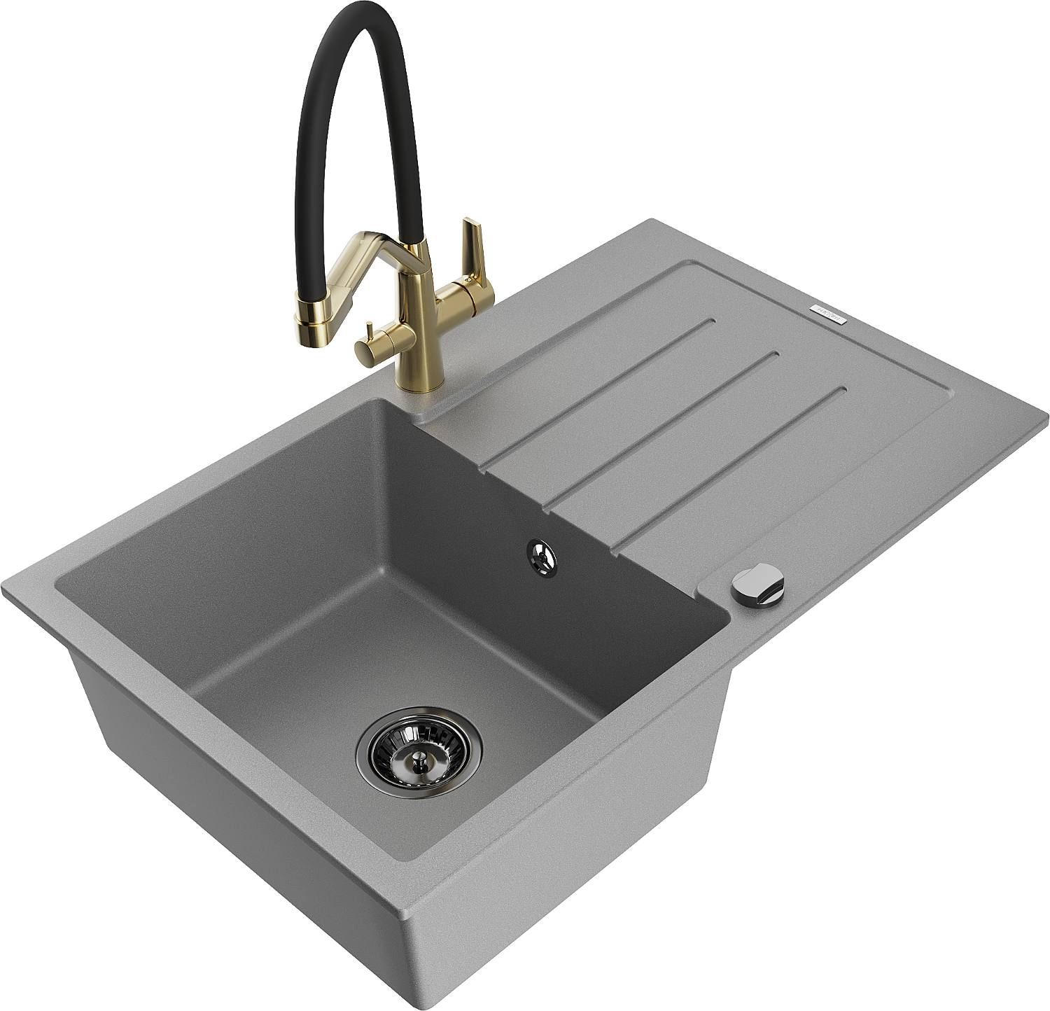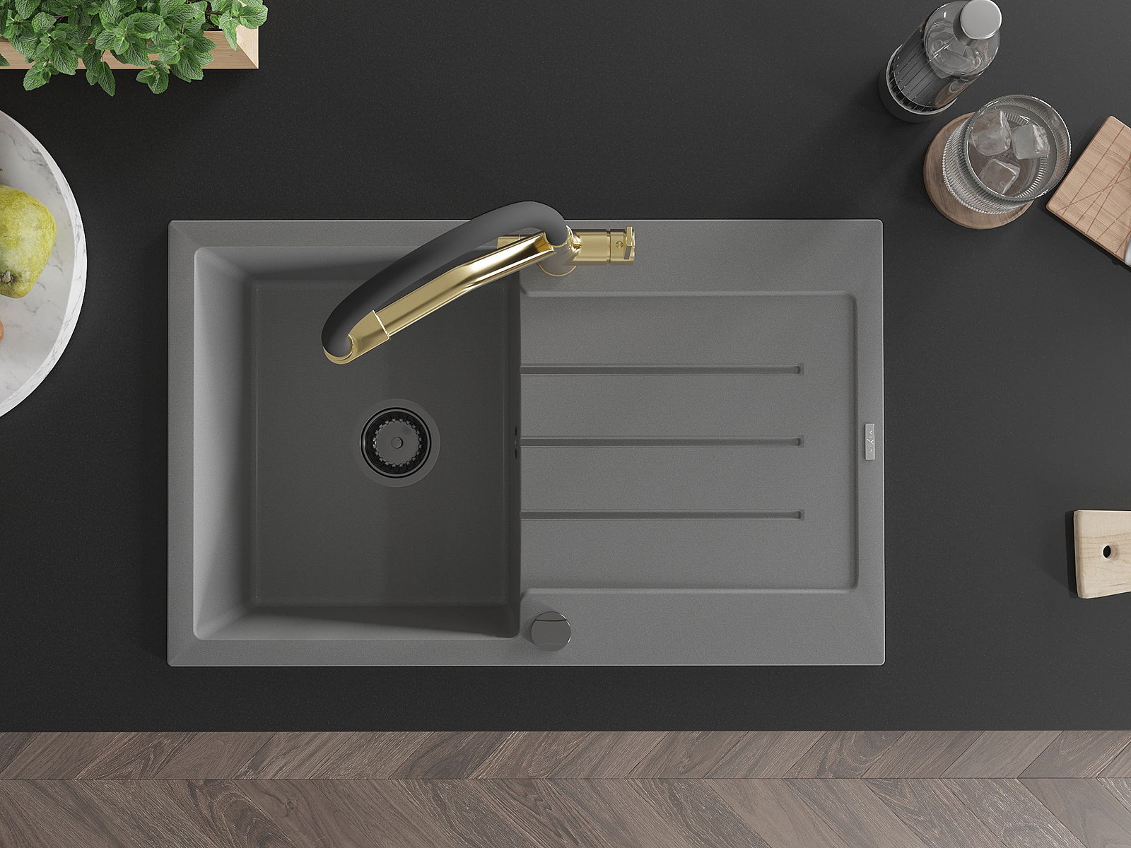 Mexen Bruno zlewozmywak granitowy 1-komorowy z ociekaczem i baterią kuchenną Duo, szary - 6513-71-671701-57-B